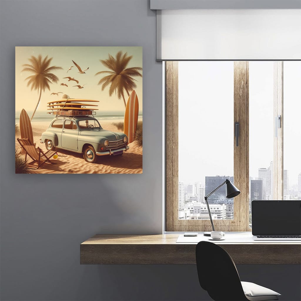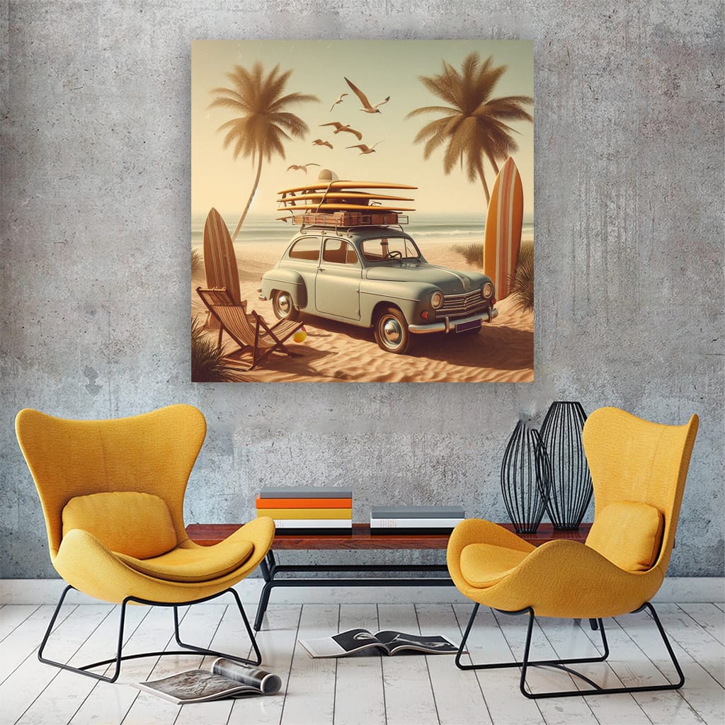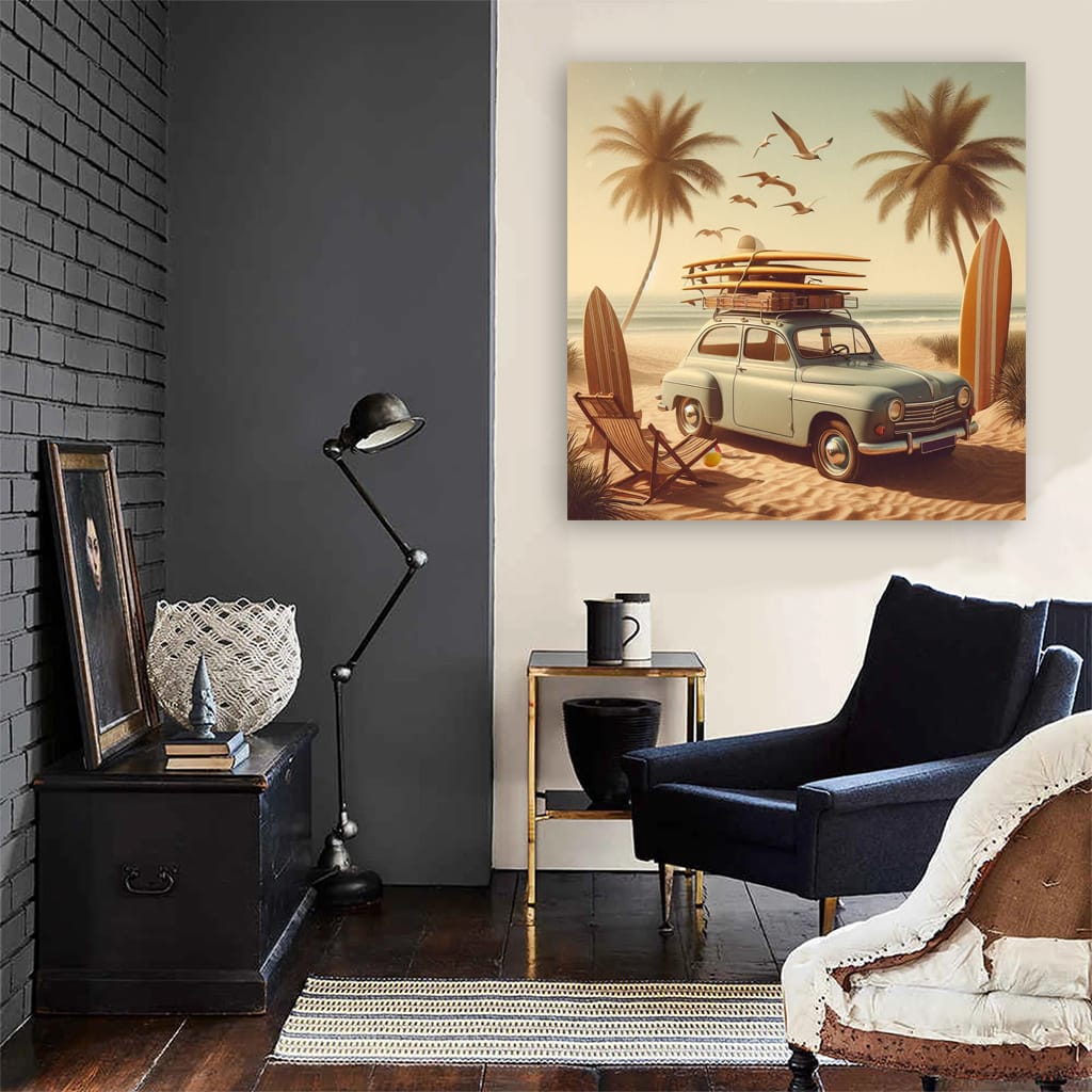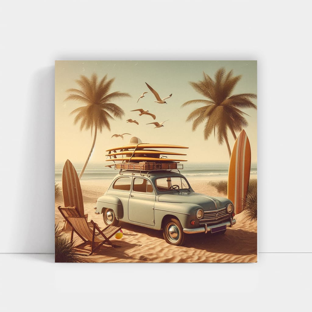 This painting is a living legend on the wall. Old Renault on the beach - just like from the garage of dreams. A poster with a retro touch, for those who know a lot about cars. Wall art for true fans who appreciate the style and charisma of the iron horse. See more from the collection: Renault Art