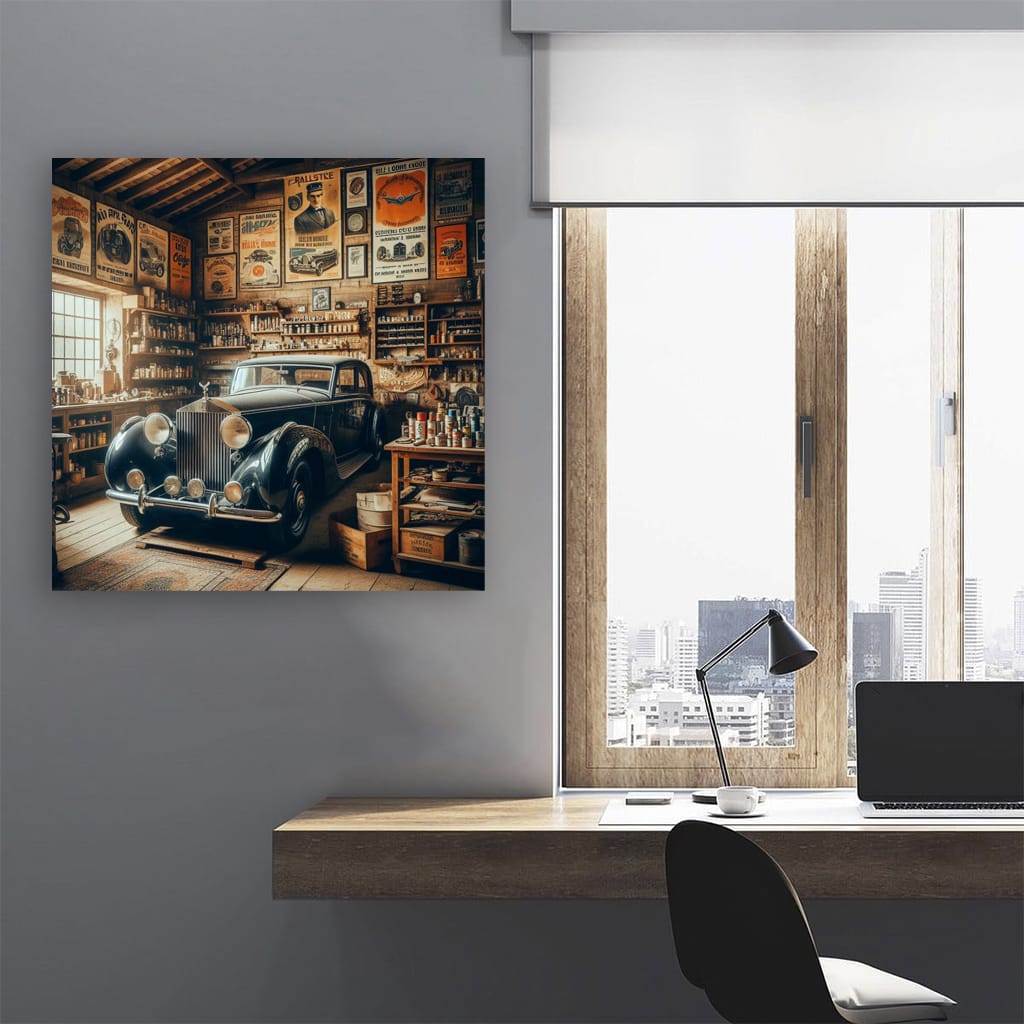 Vintage Rolls-Royce in Classic Garage - Timeless Elegance Wall Art
