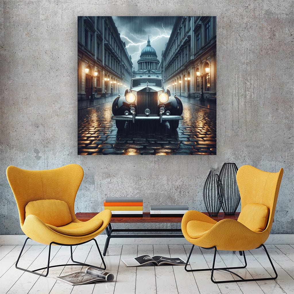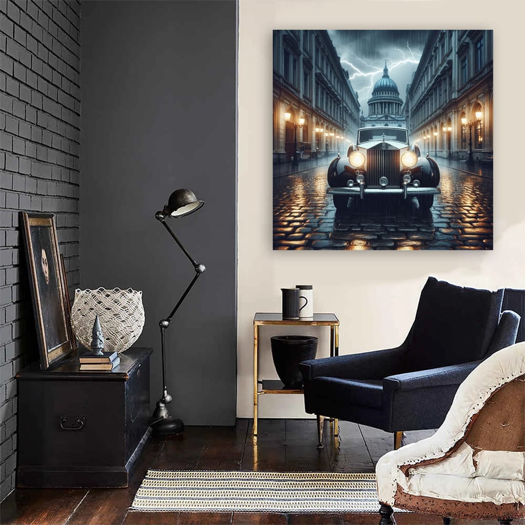 Vintage Rolls-Royce in Thunderstorm - Timeless Elegance Wall Art