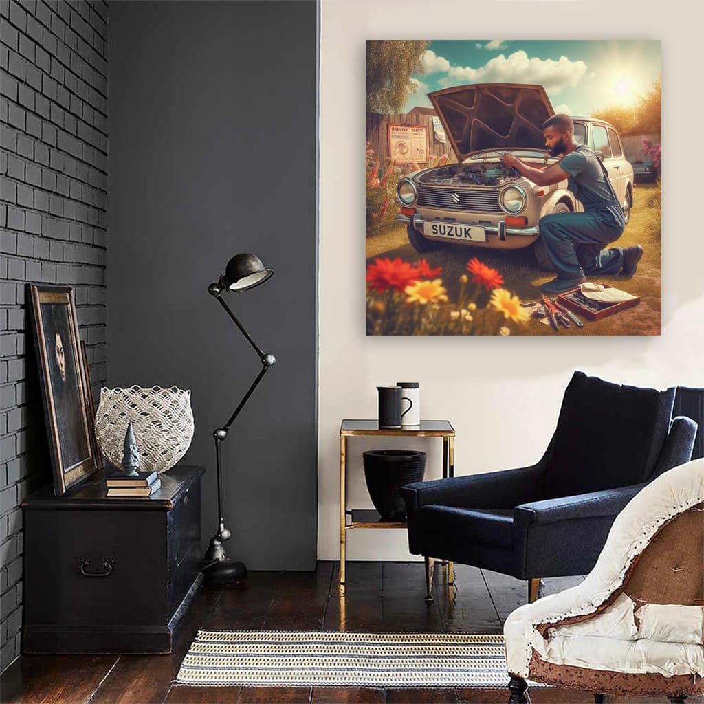 Hey bro, look at this poster - pure magic! Suzuki, old retro style, and sunny weather - this wall art screams freedom and speed. A painting that brings life to the walls, like a roaring engine at maximum. Perfect for real car fans! See more from the collection: Suzuki Art