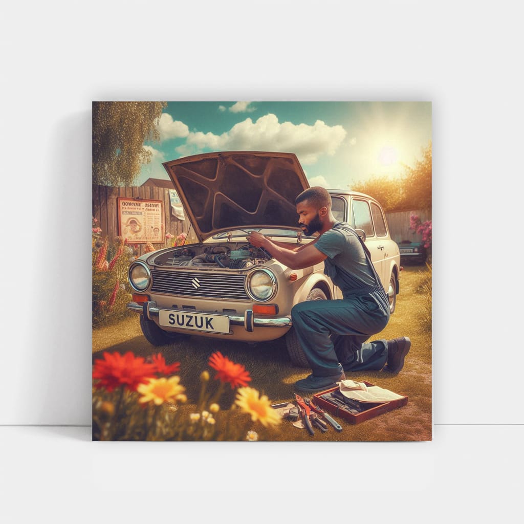 Vintage Suzuki in Sunny Weather - Classic Retro Charm Wall Art