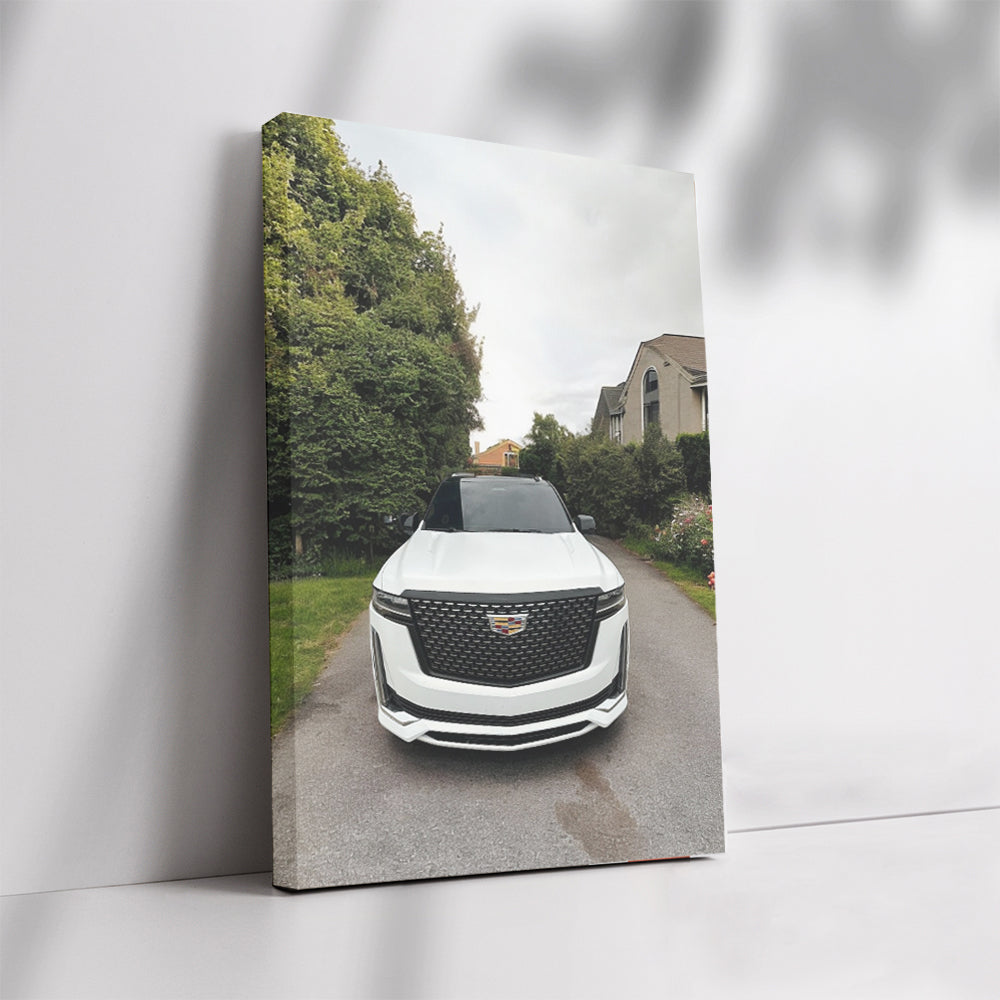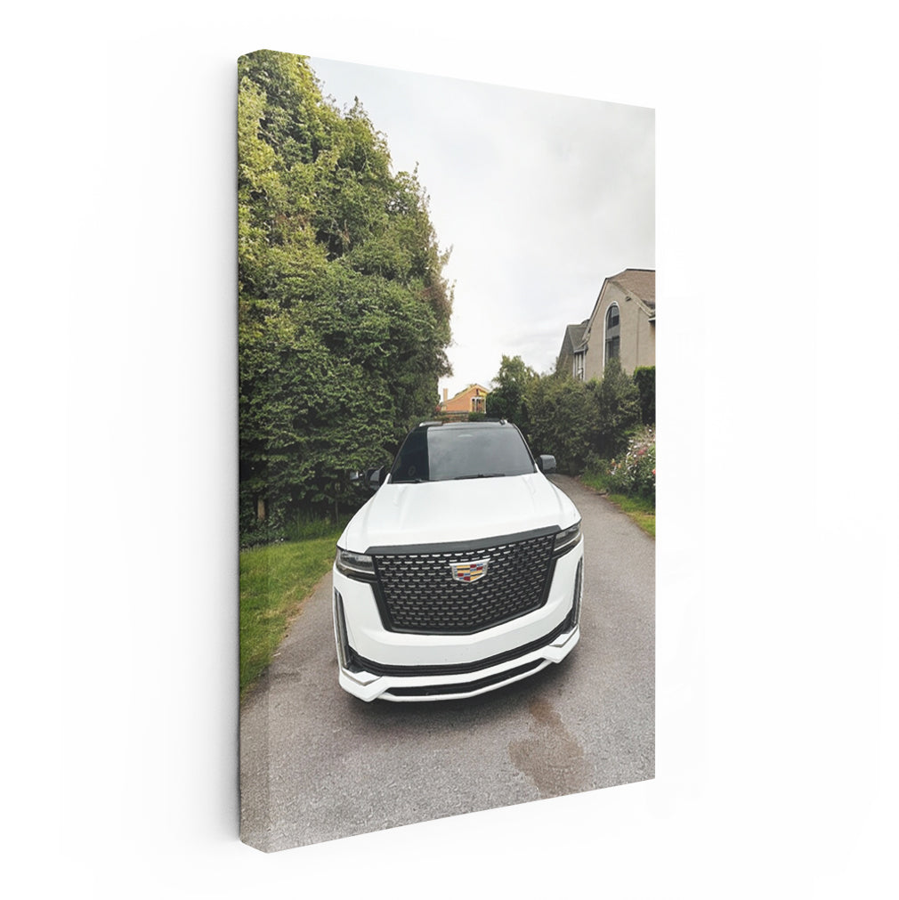 Vintage White Cadillac in Village - Classic Elegance Wall Art