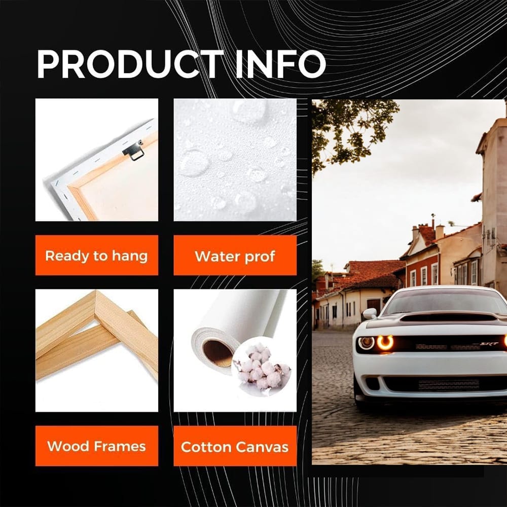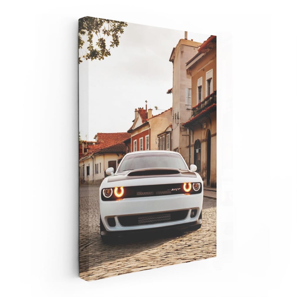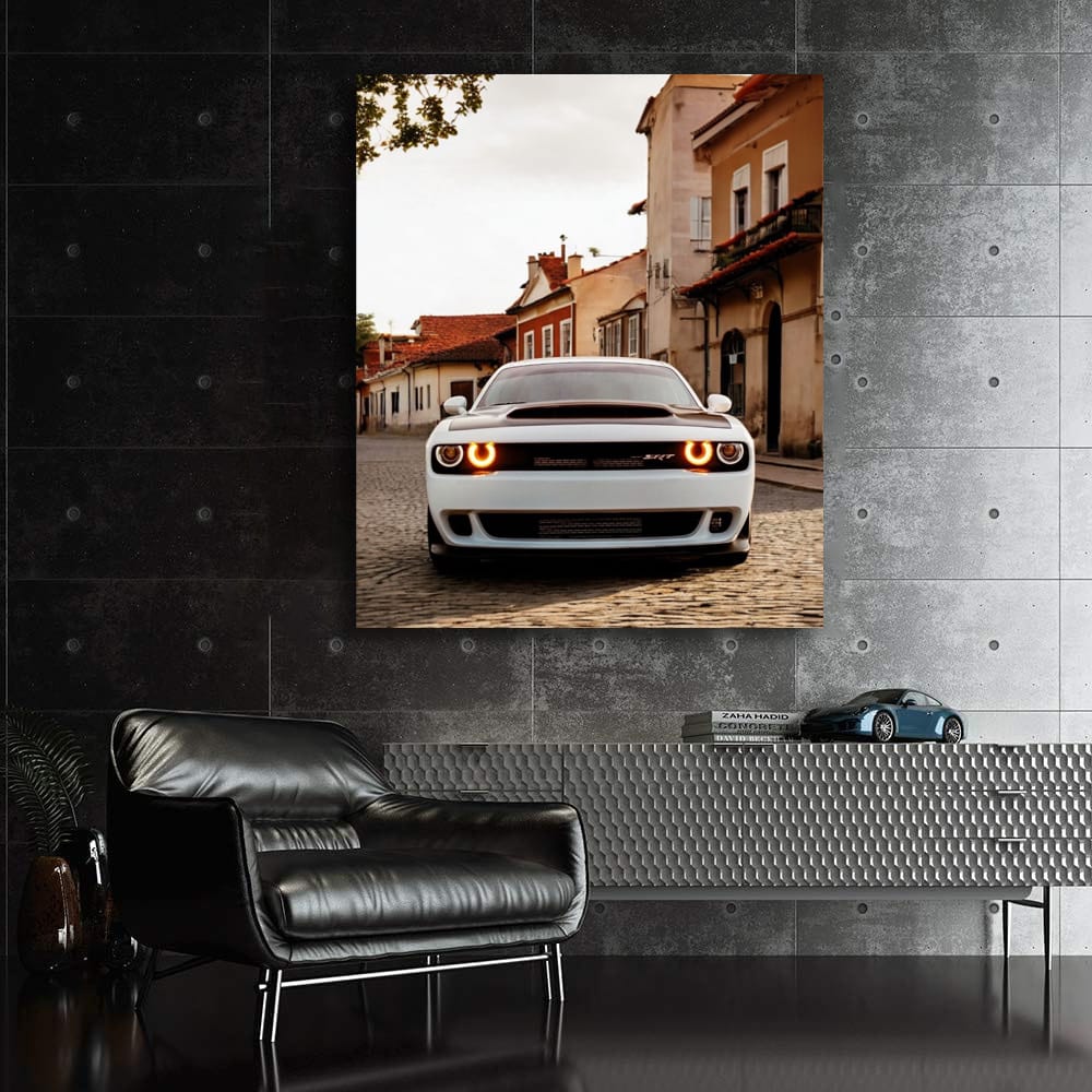 Hey bro, check out this poster! This is not just a painting, this is a real piece of history. Dodge in the old town, like a powerful beast against the retro streets. This kind of wall art raises the adrenaline and awakens the thirst for speed. This is what a real car fan needs. See more from the collection: Dodge Art