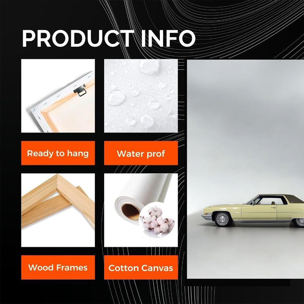 This poster is pure pleasure for those who breathe gasoline. A painting of a Cadillac, an old yellow beast, rips and throws on the wall. This wall art says: "Look at me, I'm a legend!" Not just decor - this is the spirit of the American road. See more from the collection: Cadillac Art