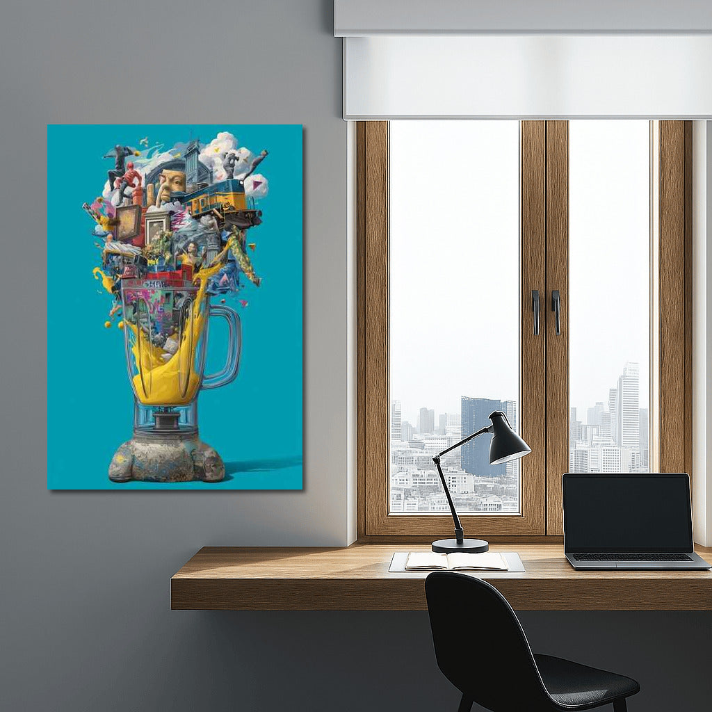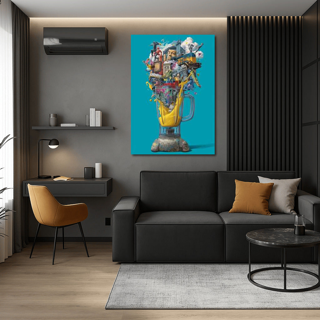 A bright explosion of fantasy in a blender! This poster is a real triumph of Maximalist style for your home. See more from the collection: Maximalist Art