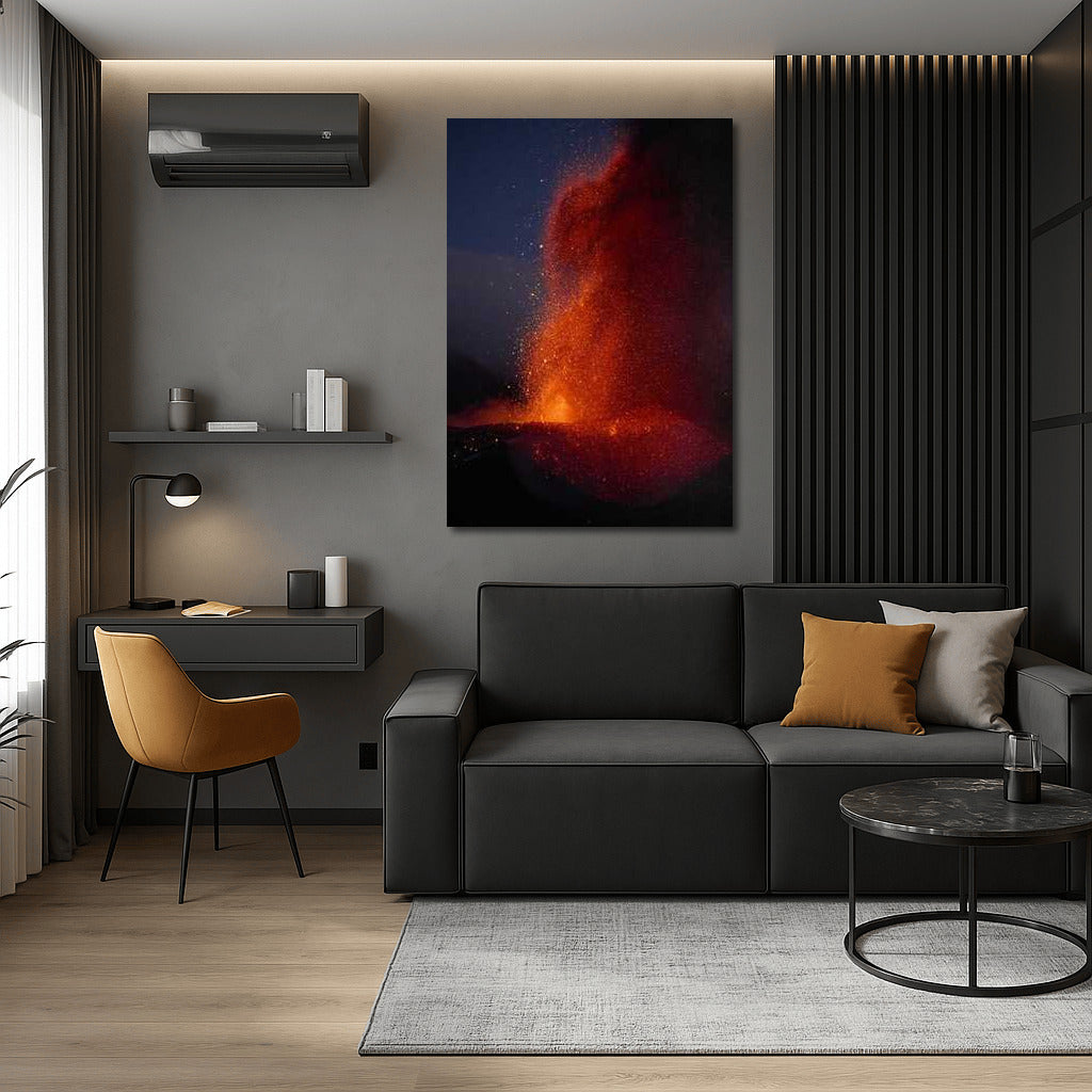 Fiery power of nature on poster: volcano erupts colorful amazement. Wall art for lovers of Nature Landscapes. See more from the collection: Nature & Landscapes Art
