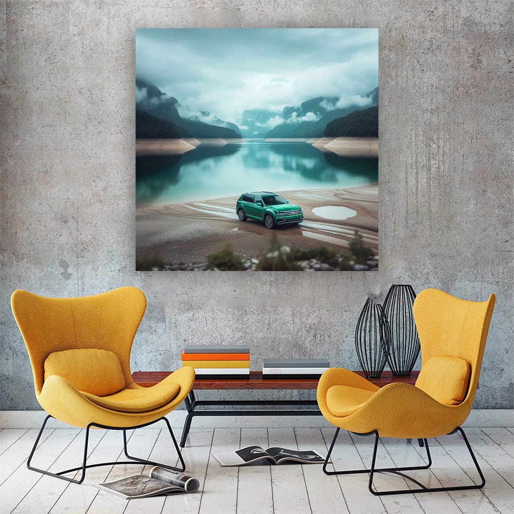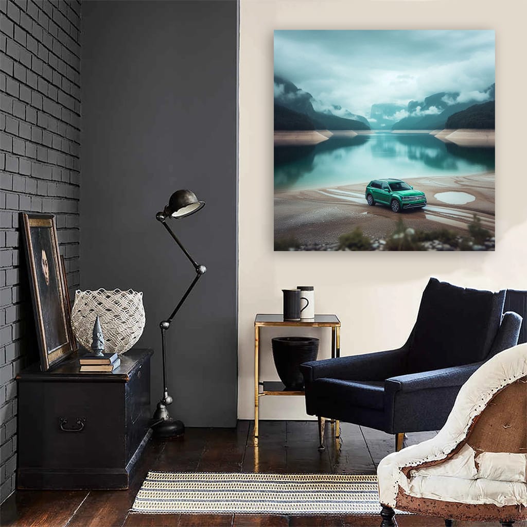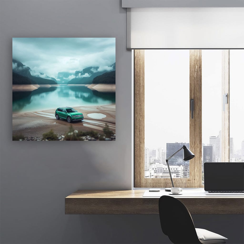 Bro, this wall art is the bomb! The poster of Volkswagen Atlas against the lake is pure bliss. This painting will give your wall a sporty spirit and power. Not just decor, but real auto art for those who understand cars. See more from the collection: Volkswagen Art