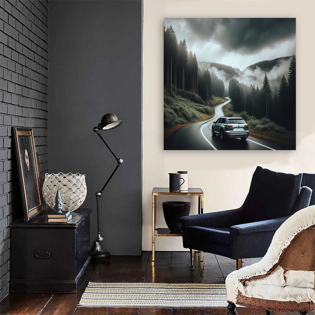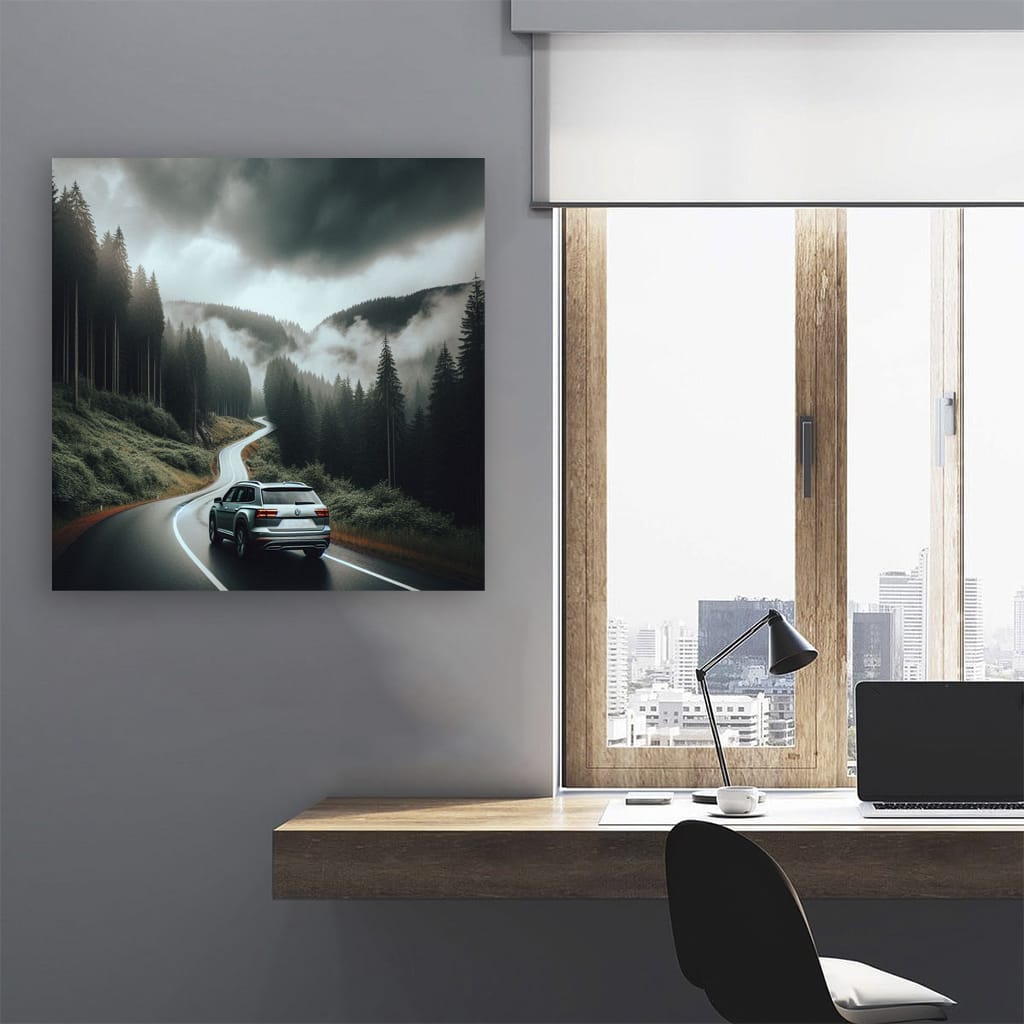 What a poster! It shows a Volkswagen Atlas in cloudy weather, as if it had burst out of a movie. Wall art for those who like their car to look like an animal in the wild. A painting that will get your adrenaline pumping! See more from the collection: Volkswagen Art