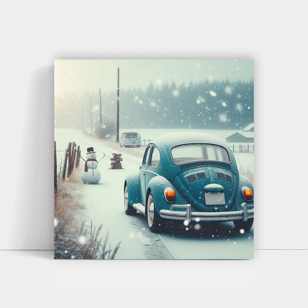 Volkswagen Beetle in Snowfall: Classic Charm and Timeless Style Wall Art