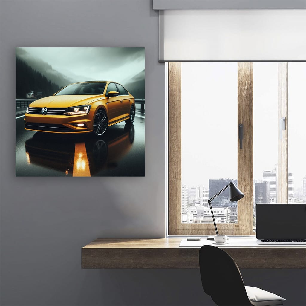 Imagine a poster of your favorite Volkswagen Jetta posing against a cloudy sky. This wall art is like a breath of fresh air for a car enthusiast. A moody painting that makes the car look like it just rolled out of a tuning shop. See more from the collection: Volkswagen Art