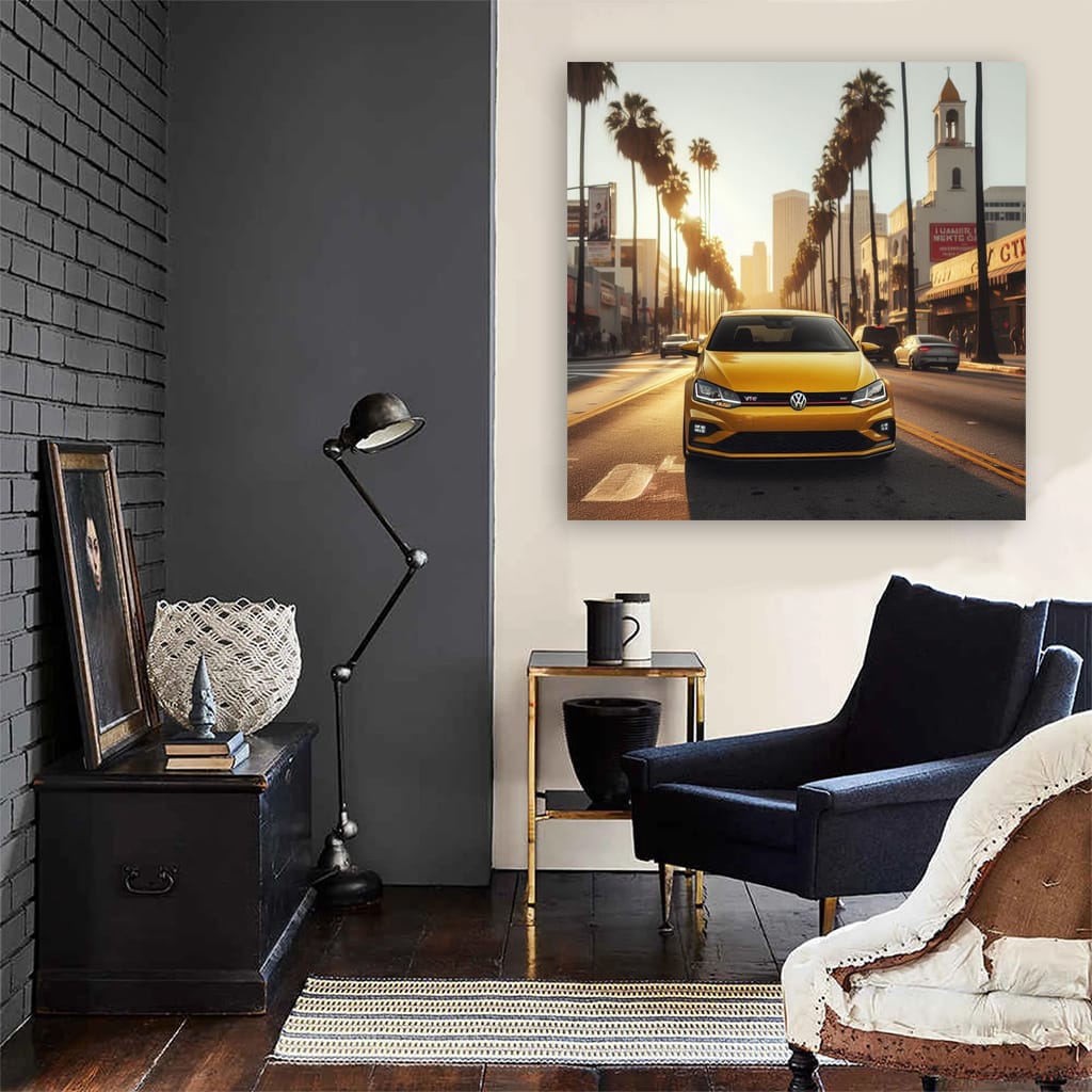 Here's your dream poster: Volkswagen Polo GTI in Los Angeles. This is not just a car, but a real beast on wheels. Wall art for real car lovers. A painting that will give you goosebumps. Power, speed and style - all in one frame. See more from the collection: Volkswagen Art