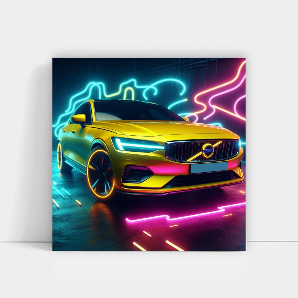 Bro, check out this poster! This neon Volvo S60 is wall art for true car fans. The painting screams speed and drive, perfect for a garage or man cave. This art immediately shows that you appreciate power and style.