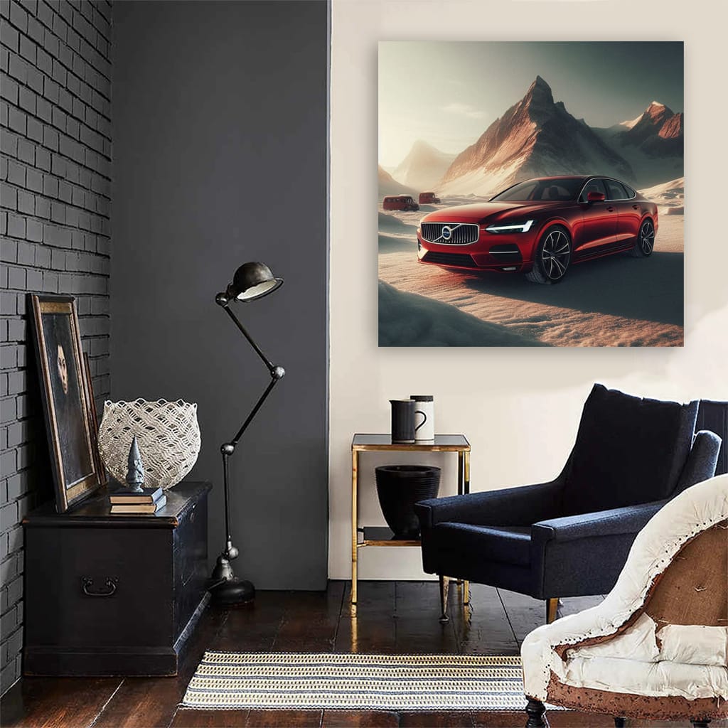 This painting is a car fan's dream! It shows a Volvo S90, like a beast on mountain roads. Wall art for a man with gasoline in his blood. Such a poster in the garage - and you are no longer just a driver, but a real king of the highway!