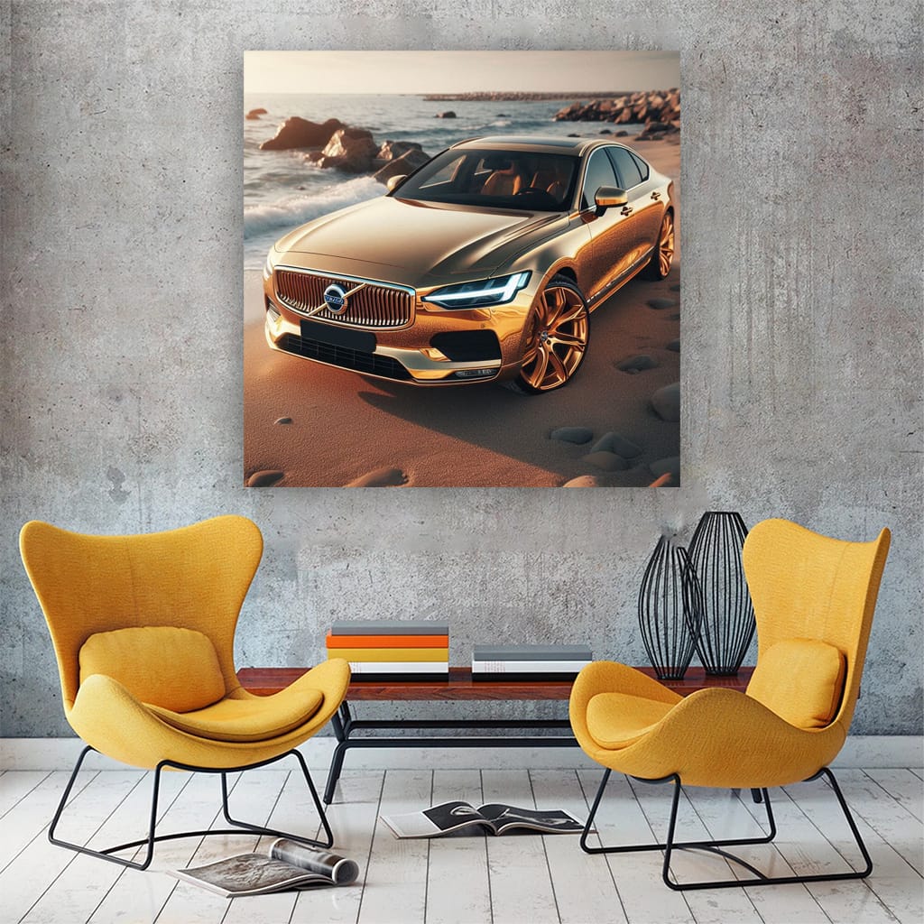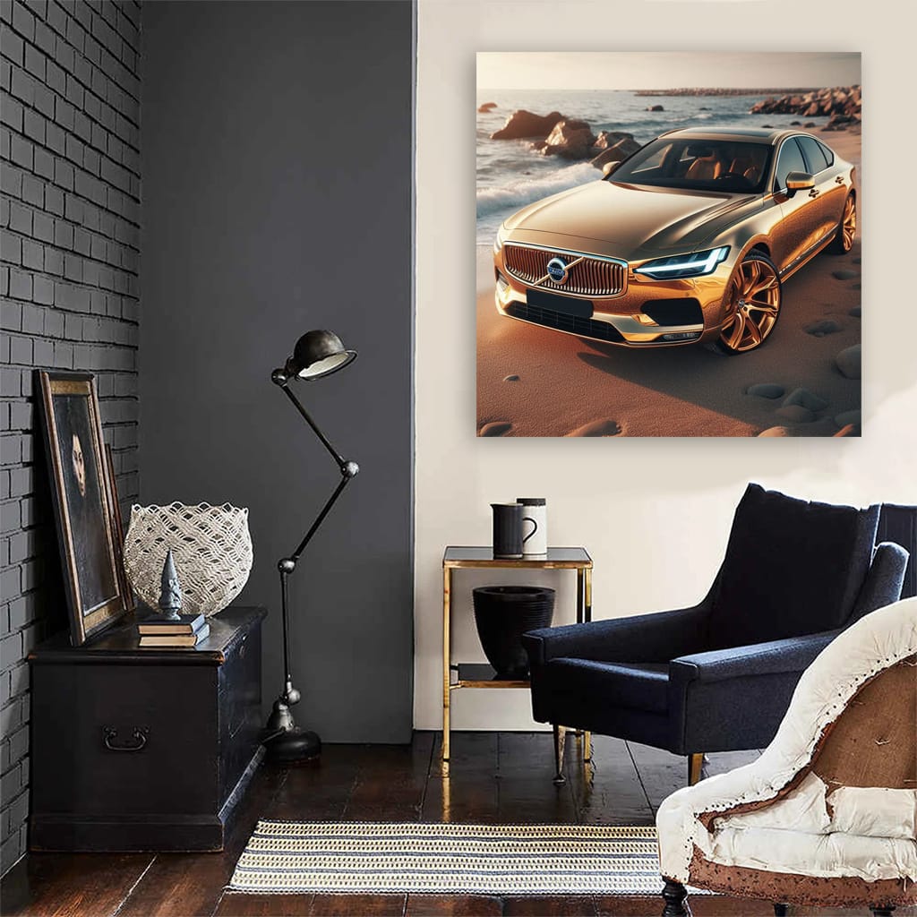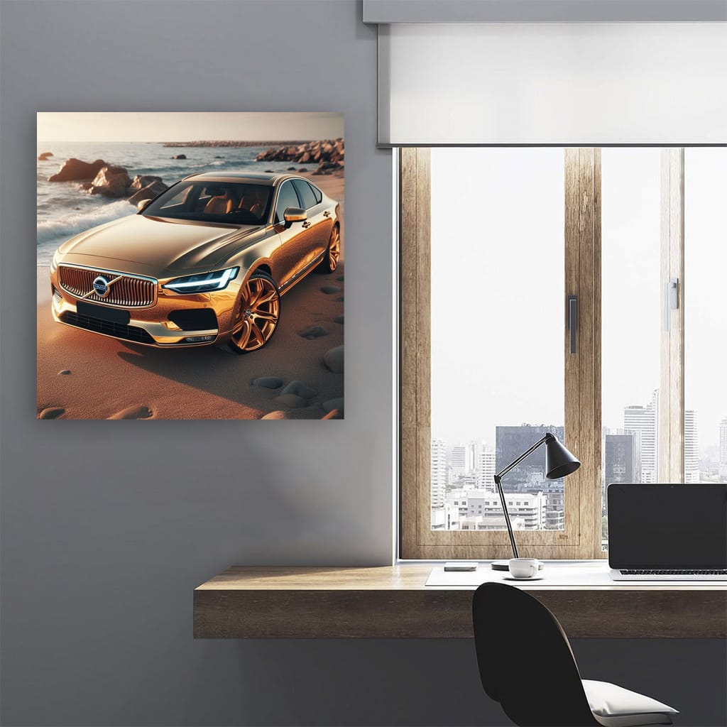 Bro, just look at this painting! Volvo S90 on the beach is not just a poster, but a real wall art for guys who know about cars. Power, style and freedom - all this is on the same wave with the sea. This painting is a must-have for the garage!