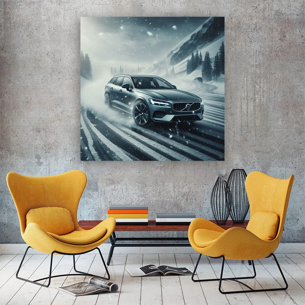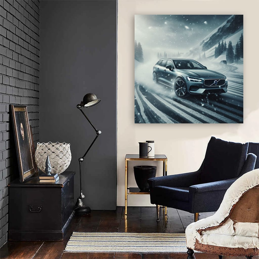 Bro, this painting of a drifting Volvo V60 is just the bomb! A poster like this on the wall is a must-have for any car fan. Wall art in its purest form: power, speed and style in one frame. Turbo atmosphere for your garage, nothing less!