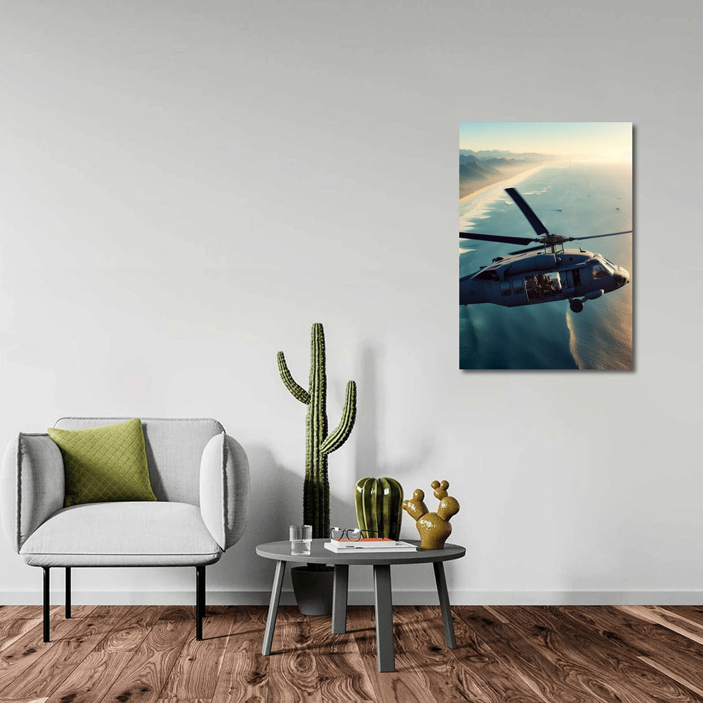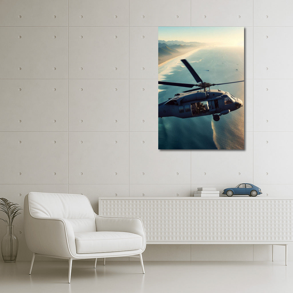 Vortex of Blades: Reconnaissance Helicopter Over the Ocean Coast Wall Art
