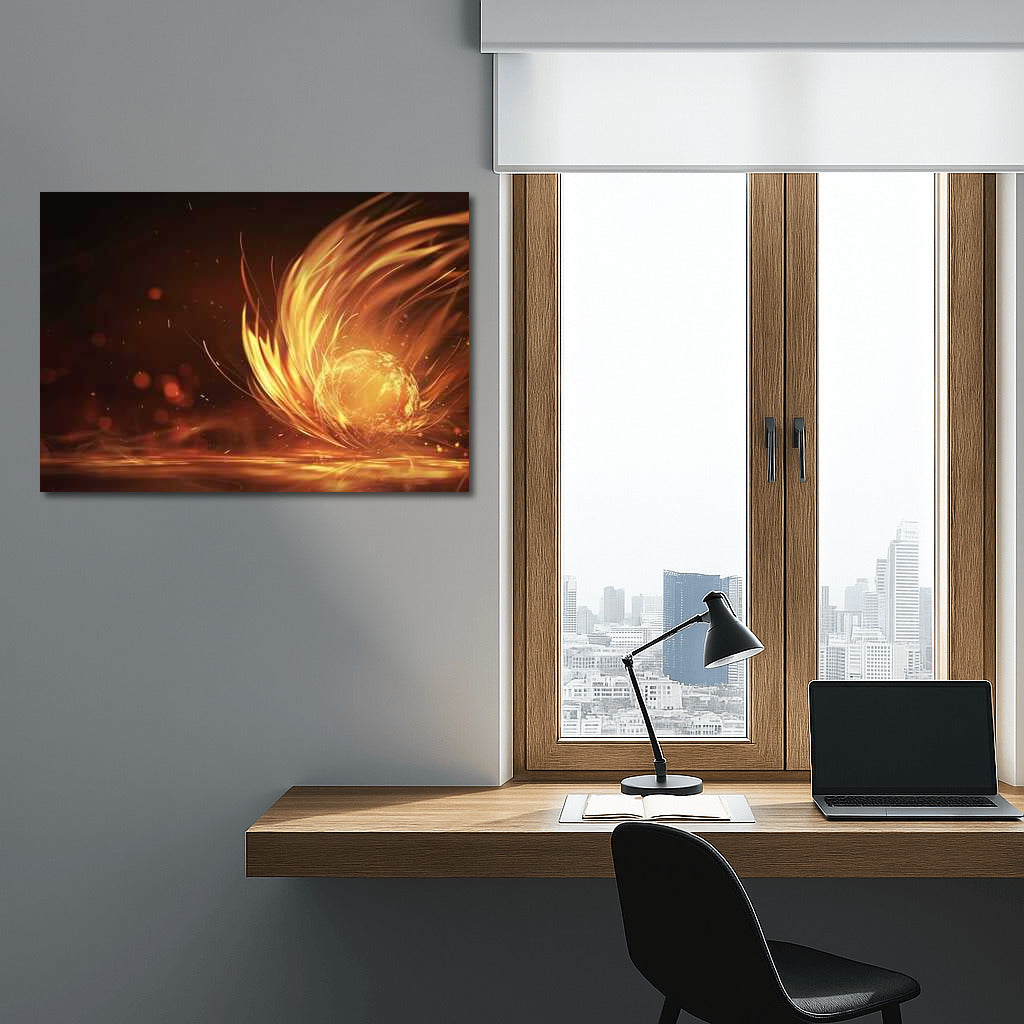 Immerse yourself in the magic of Abstract Light Ball - this wall art brings the space to life with a fiery swirl and vibrant light! See more from the collection: Abstract Art