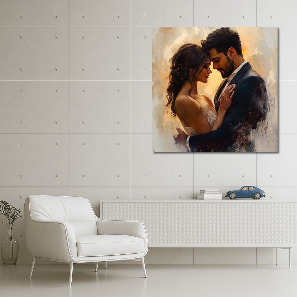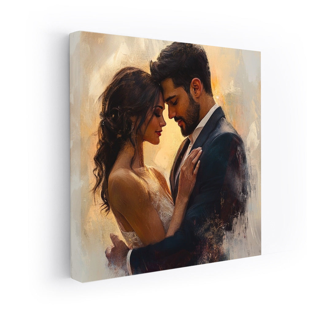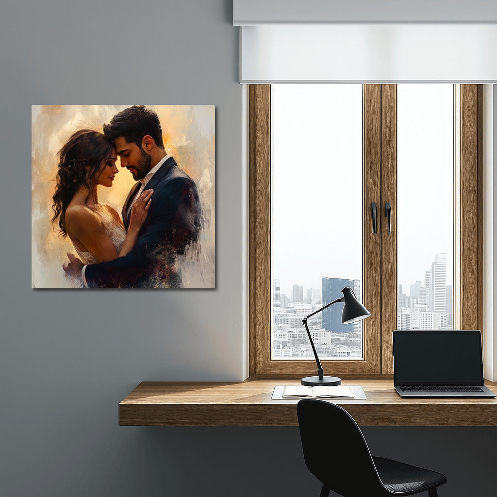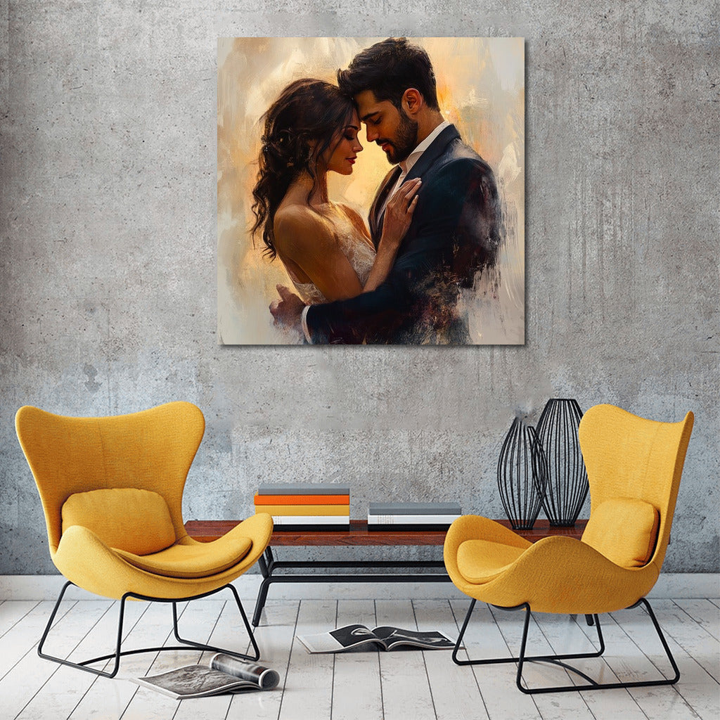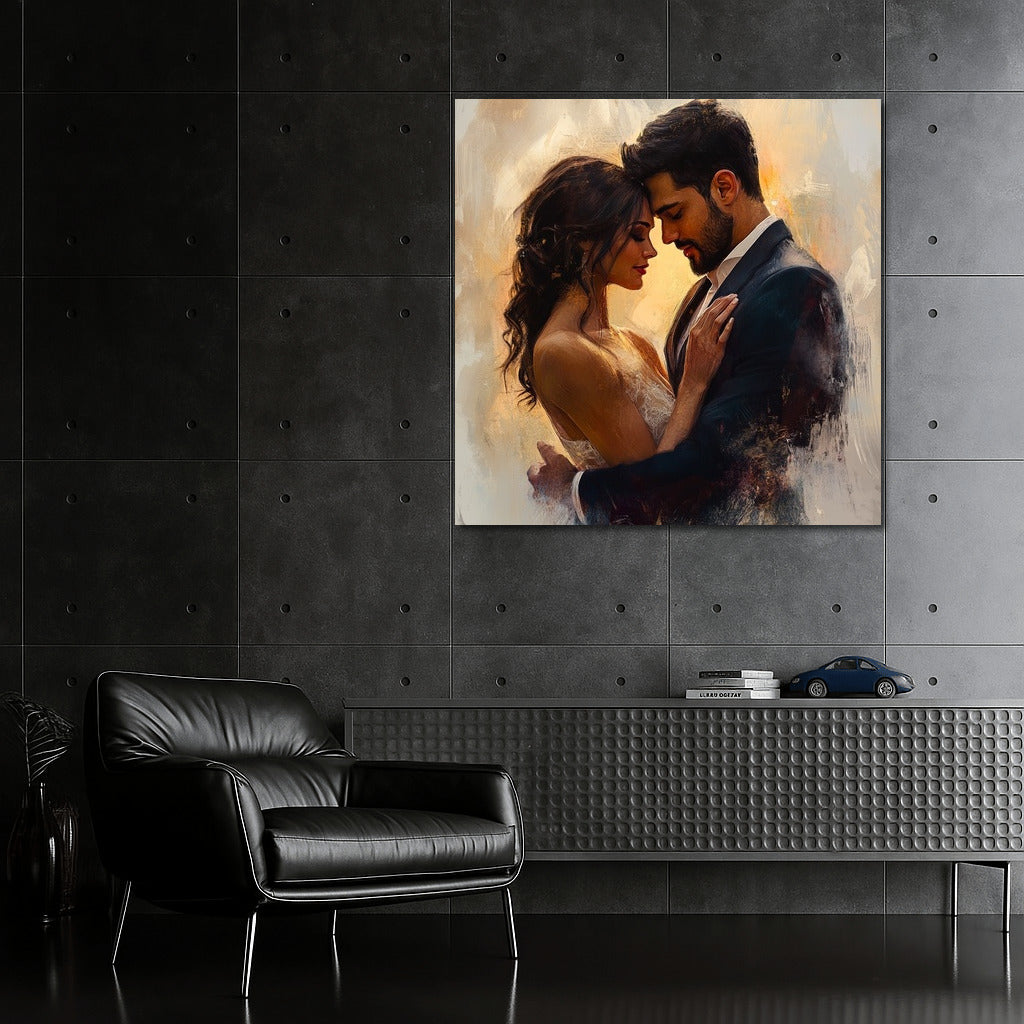 An elegant painting: a tender moment of a girl and a man dancing. This poster will add romance and elegance to your interior. See more from the collection: Love Art