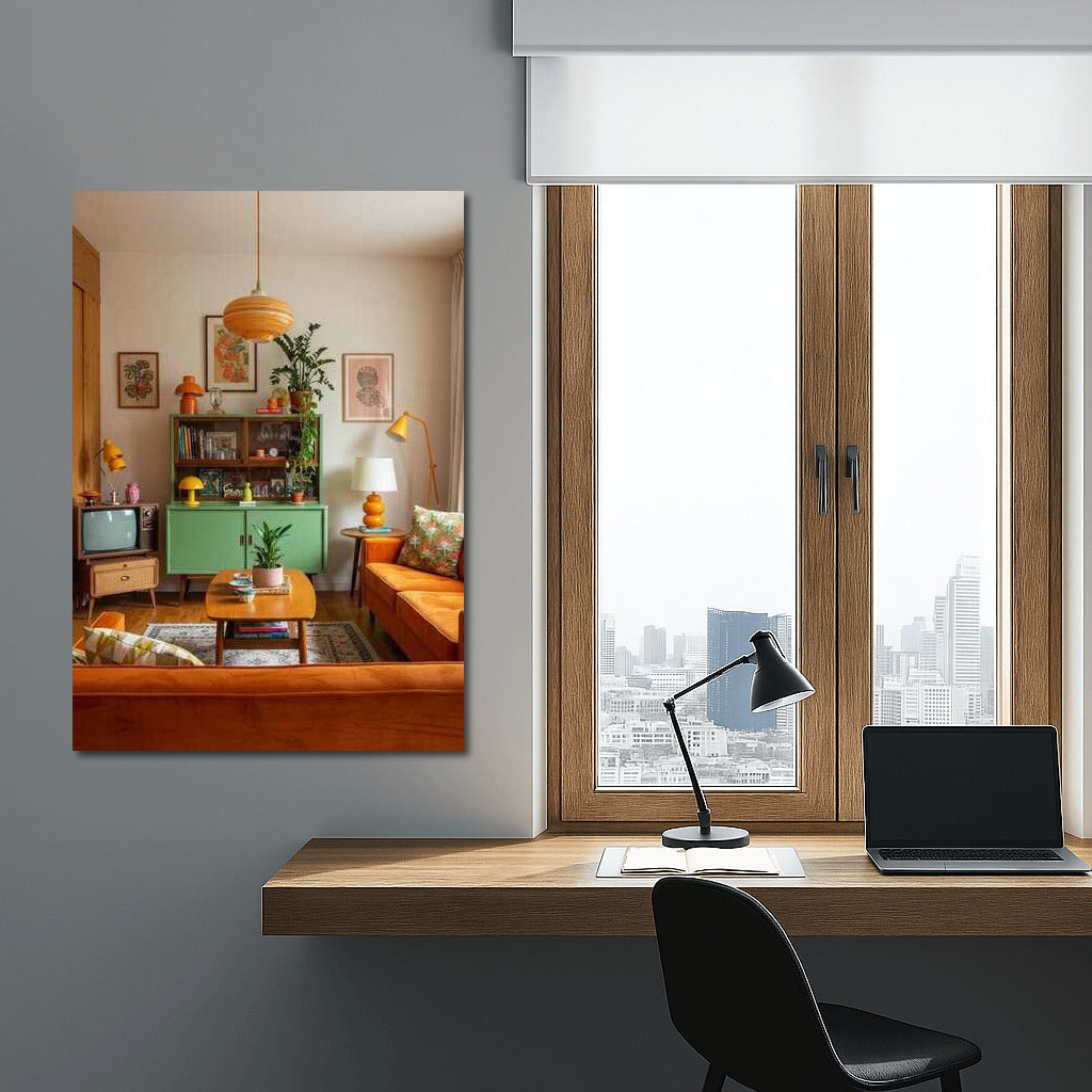 Warmth of Retro Living Room: Cozy Interior Wall Art