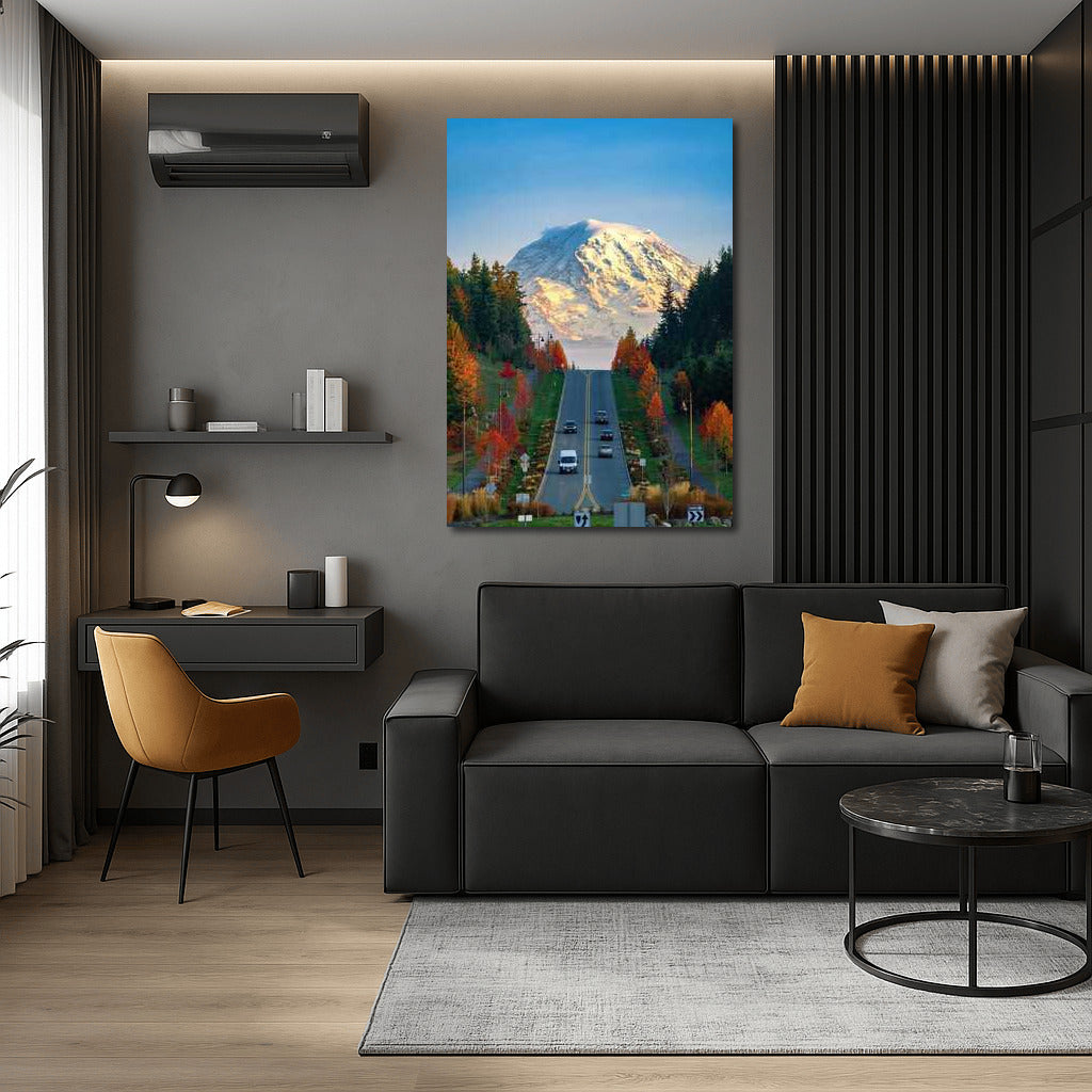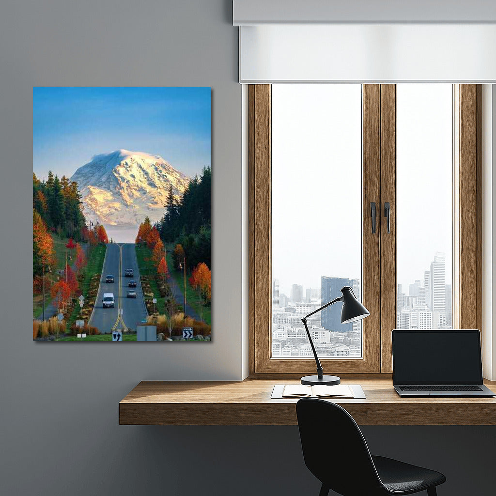 Washington Idyll: Majestic mountain and fall colors create unique wall art for your home. See more from the collection: Country Art