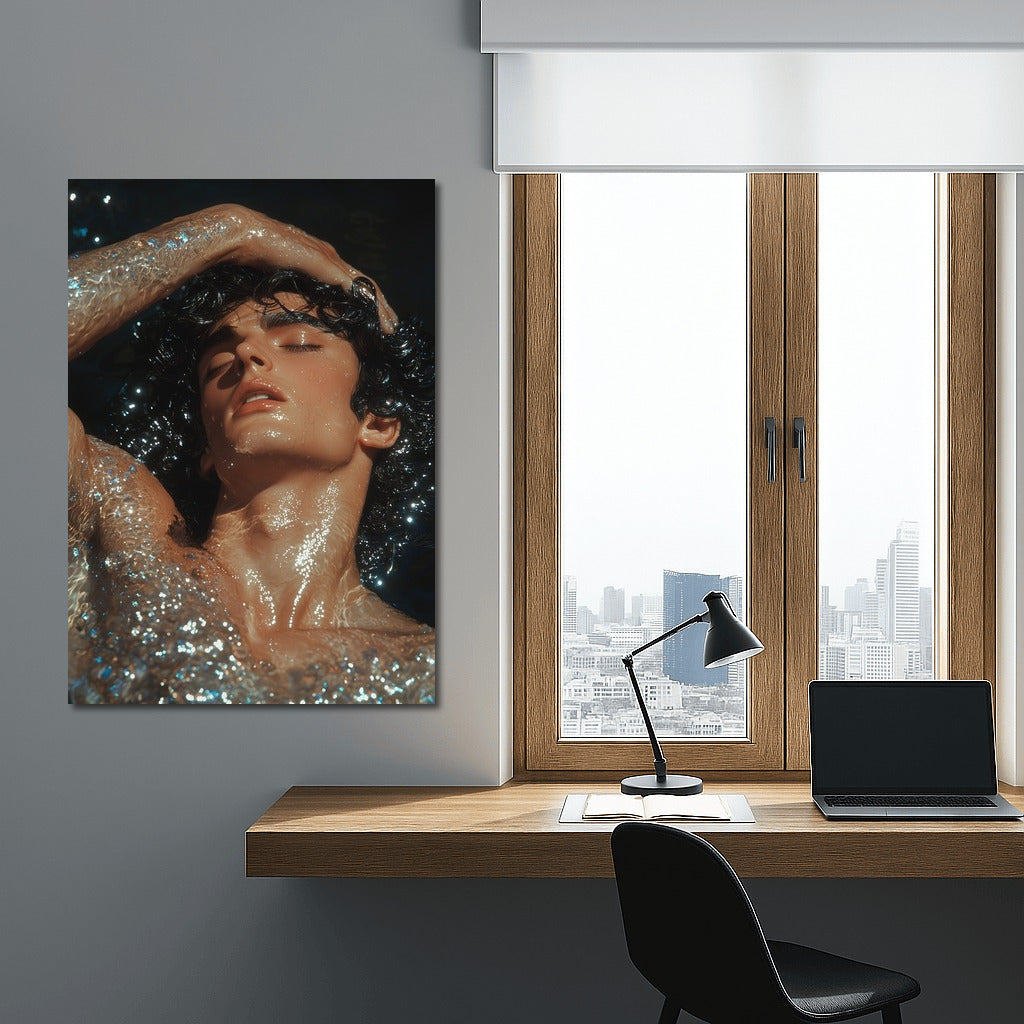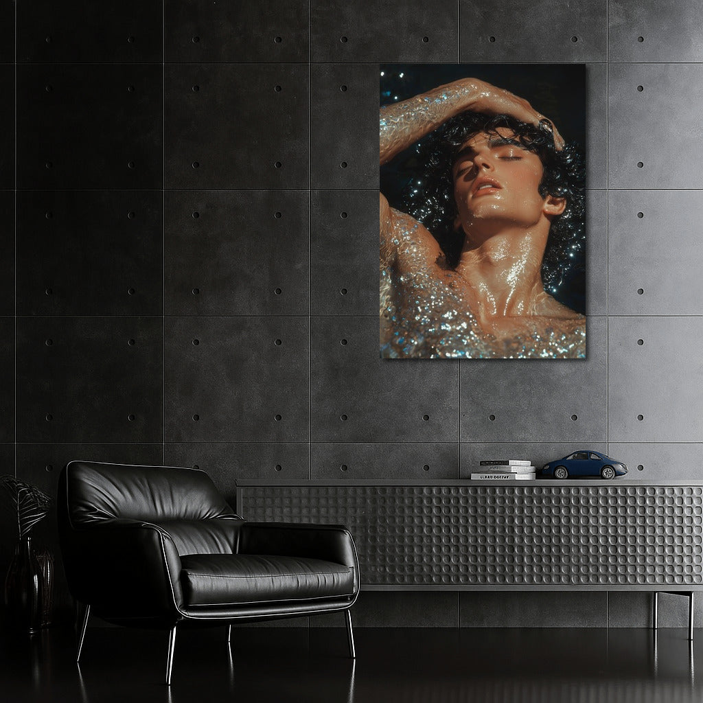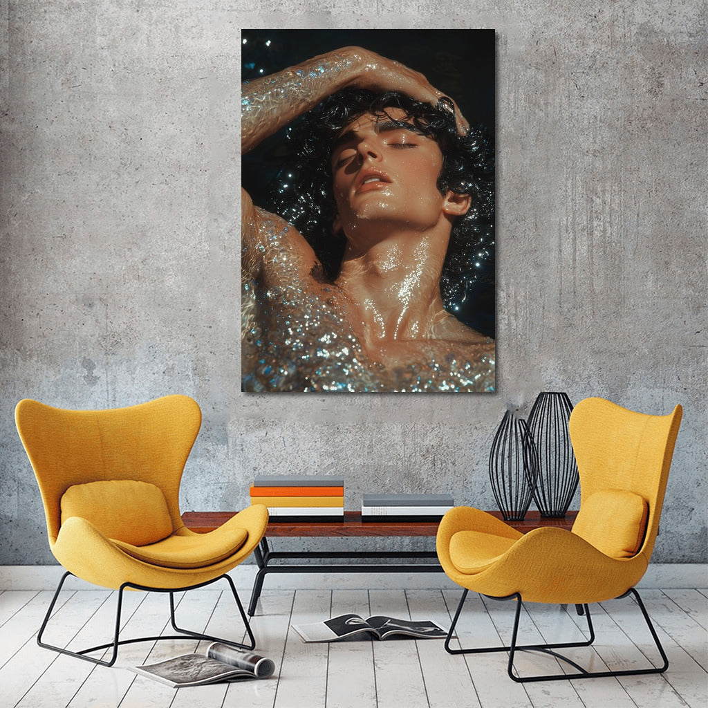 A beautiful wall art where a man merges with the glitter of water, creating a mystical and enchanting atmosphere. A perfect poster. See more from the collection: Mixed Wall Art