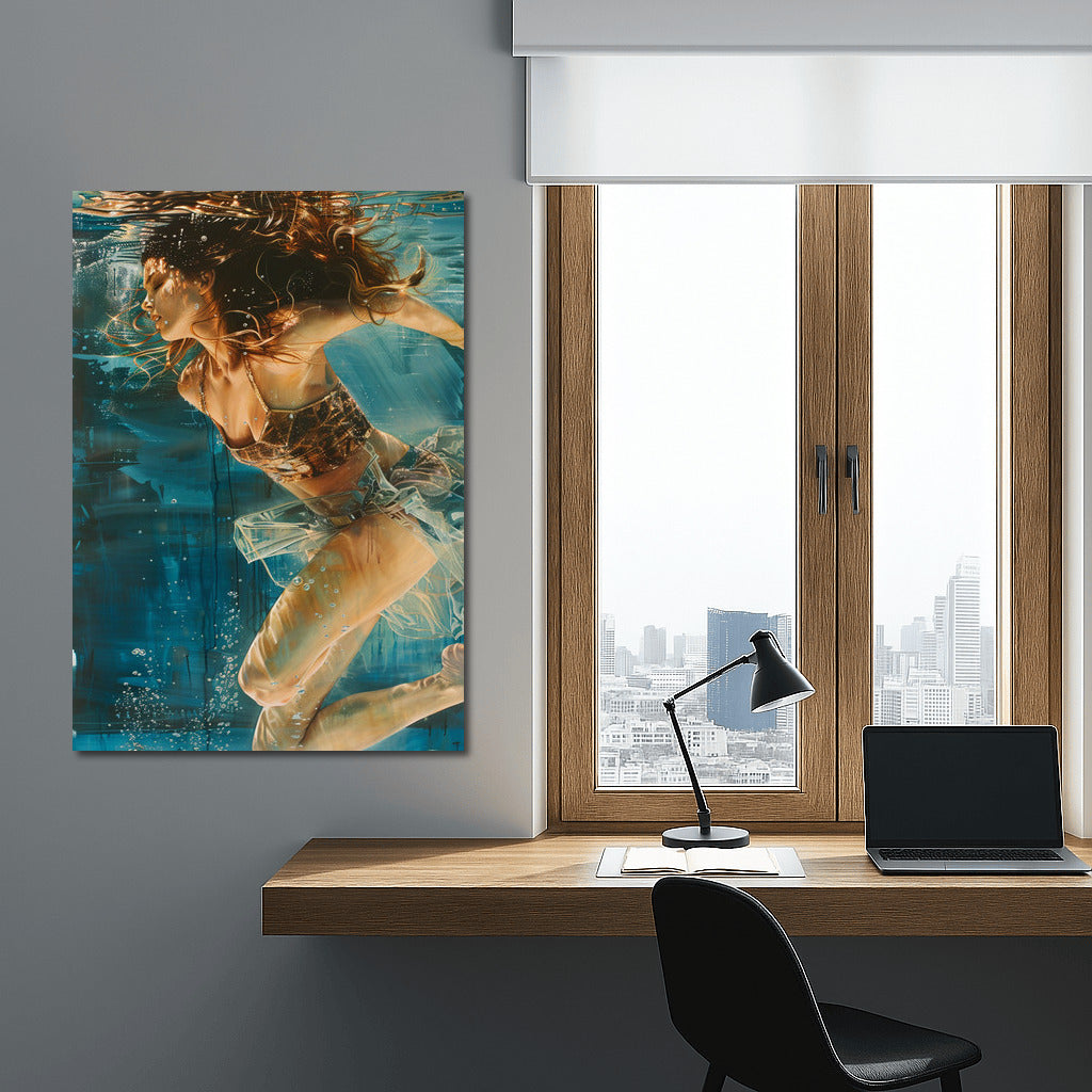 Dive into a world of fantasy with this painting - a delicate model in water comes to life on your wall art. See more from the collection: Wall Art with Women