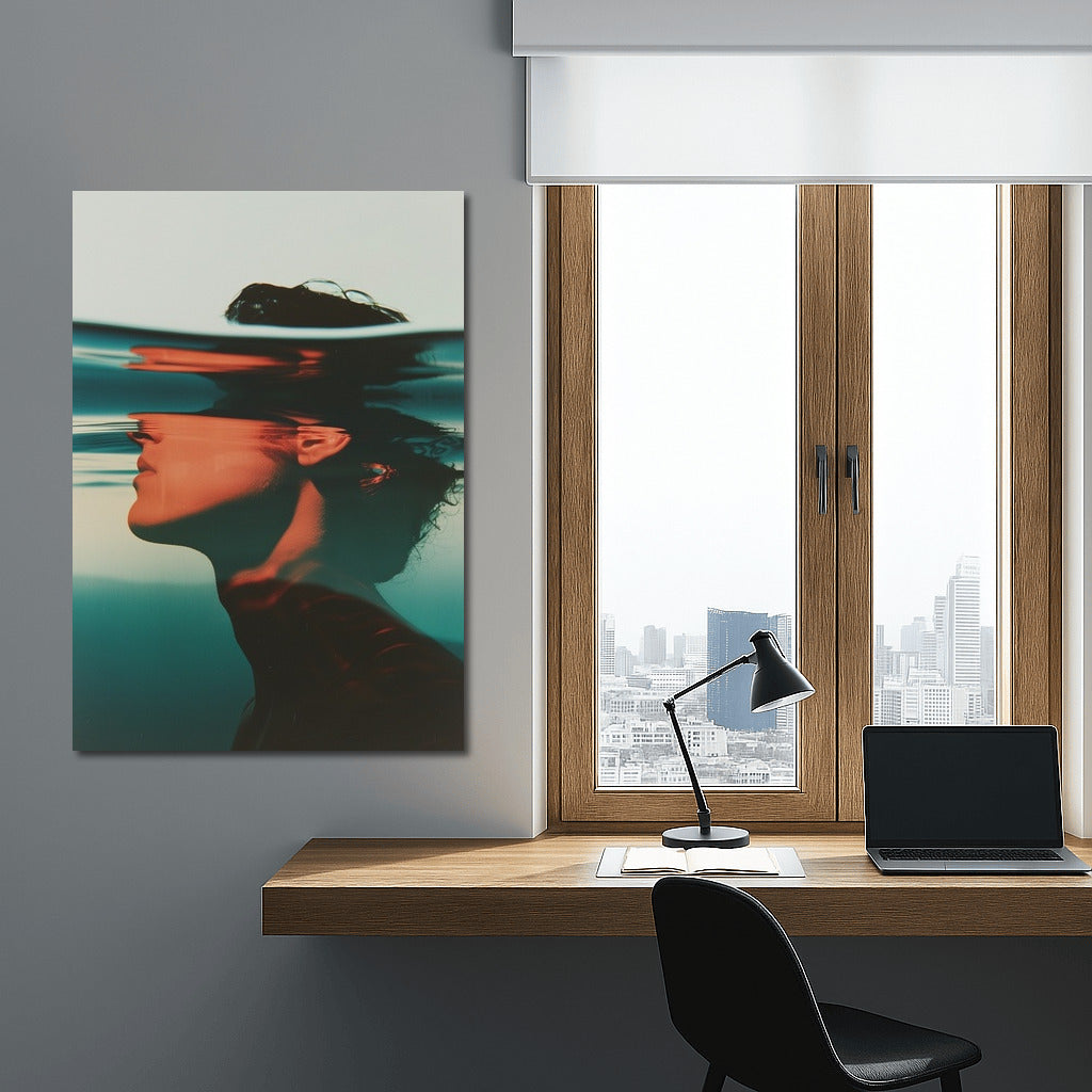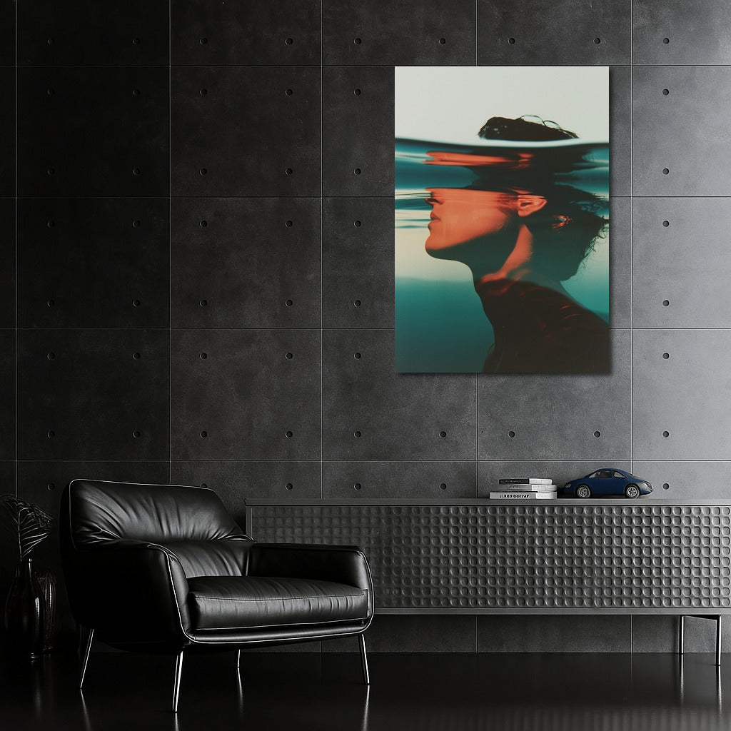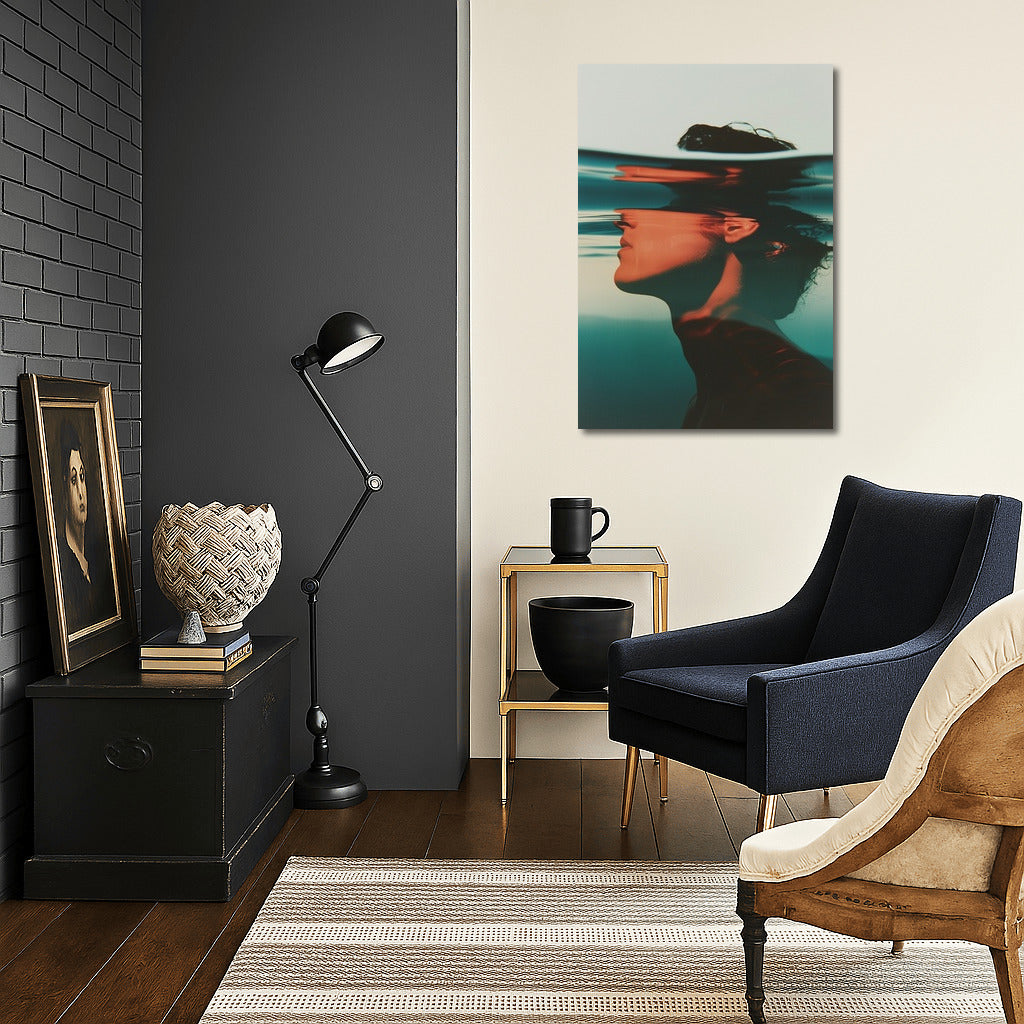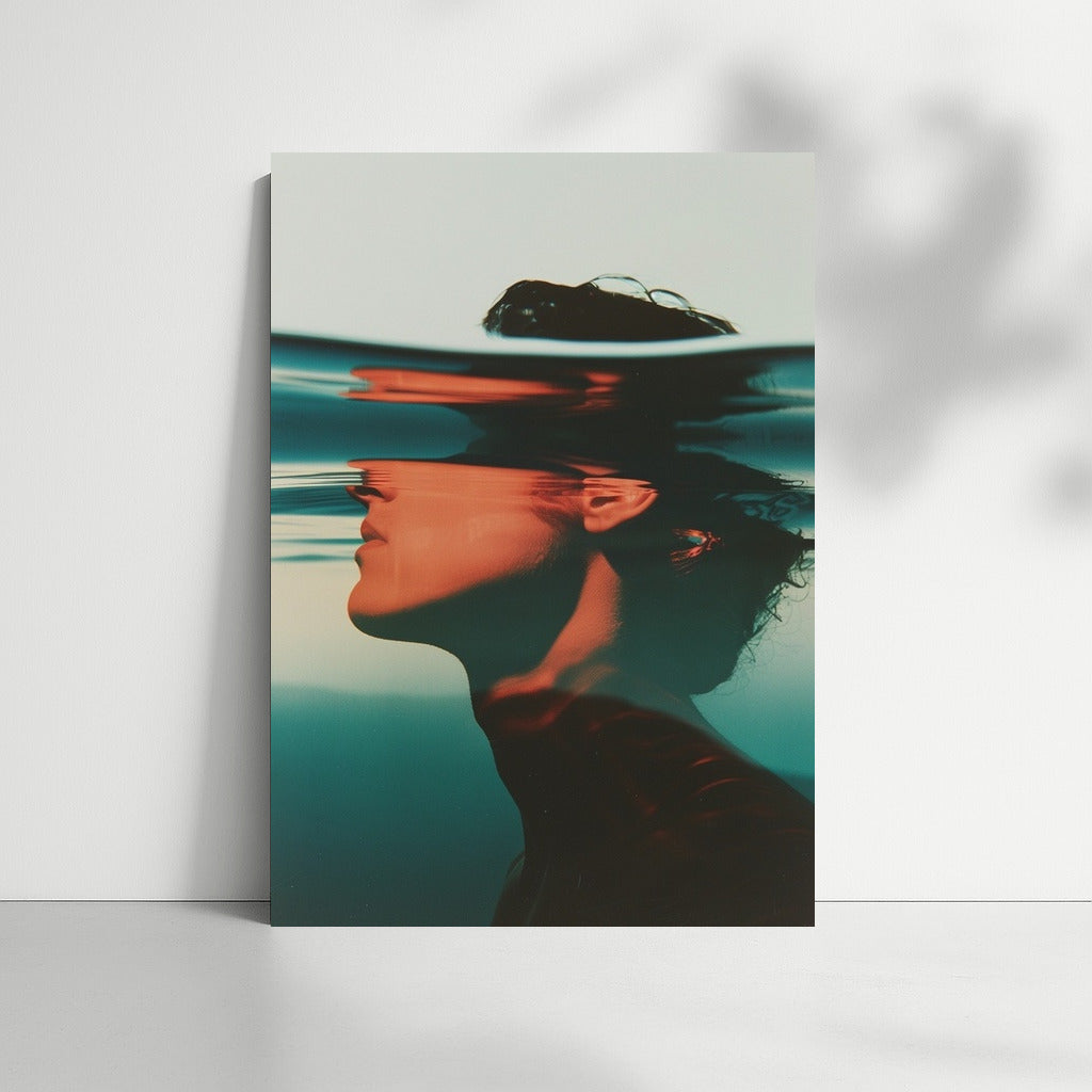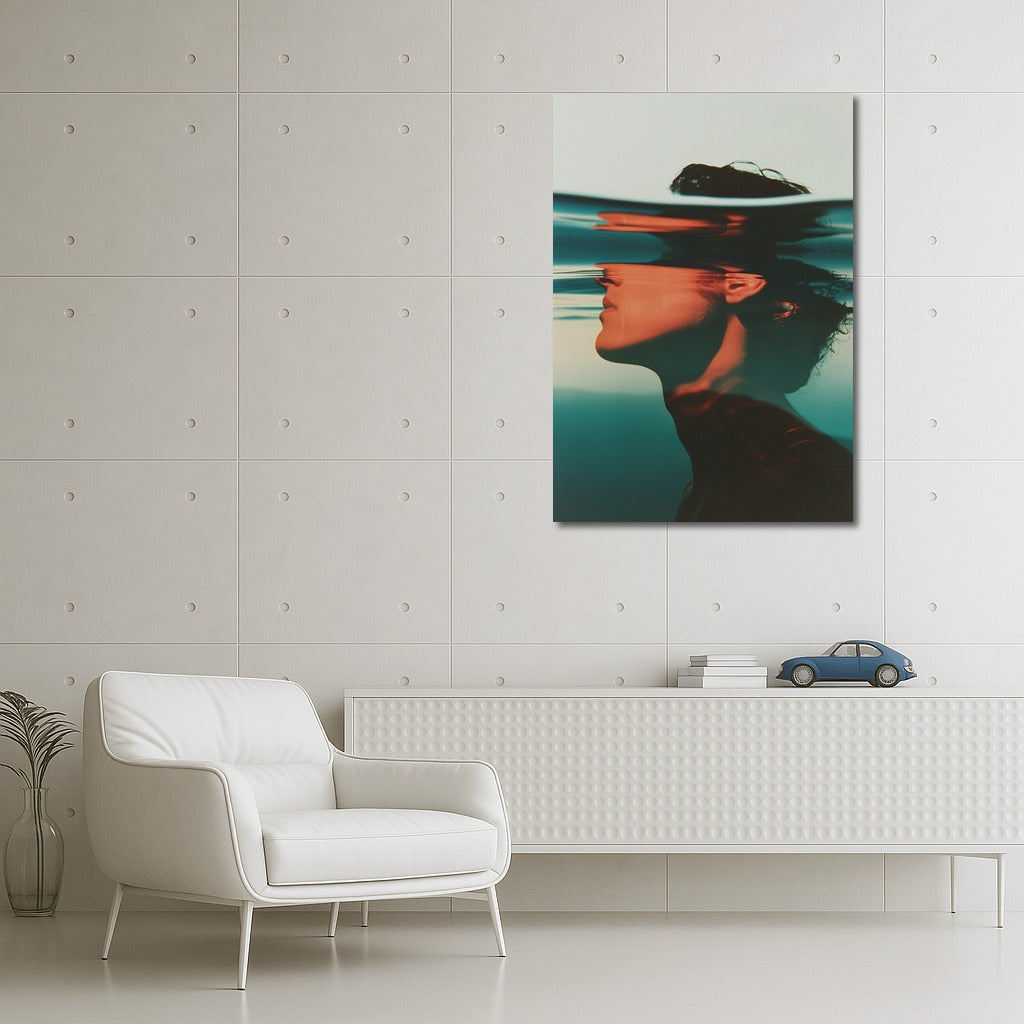 Dreamscape: An abstract painting with a face reflected in the water. A perfect poster for contemporary art lovers! See more from the collection: Mixed Wall Art