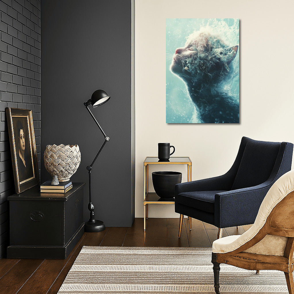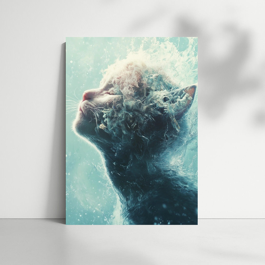 A stunning poster of a cat lost in a watercolor dream. Wall art that adds magic to any interior. See more from the collection: Animals Art