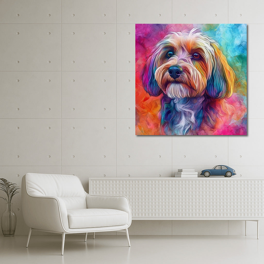 A bright poster with a portrait of a dog in watercolor tones will bring joy and comfort to your home. Wall art for the soul! See more from the collection: Mixed Wall Art