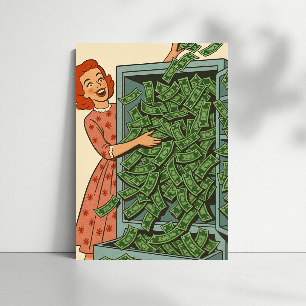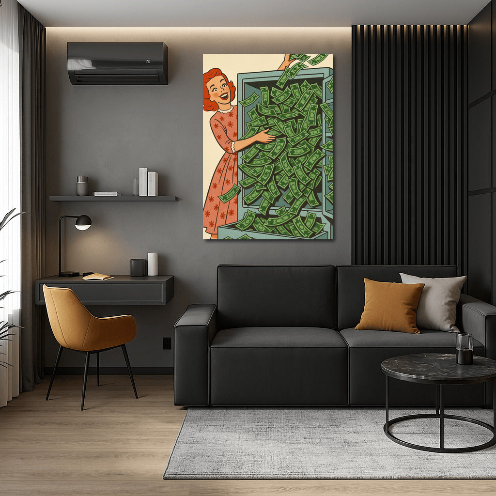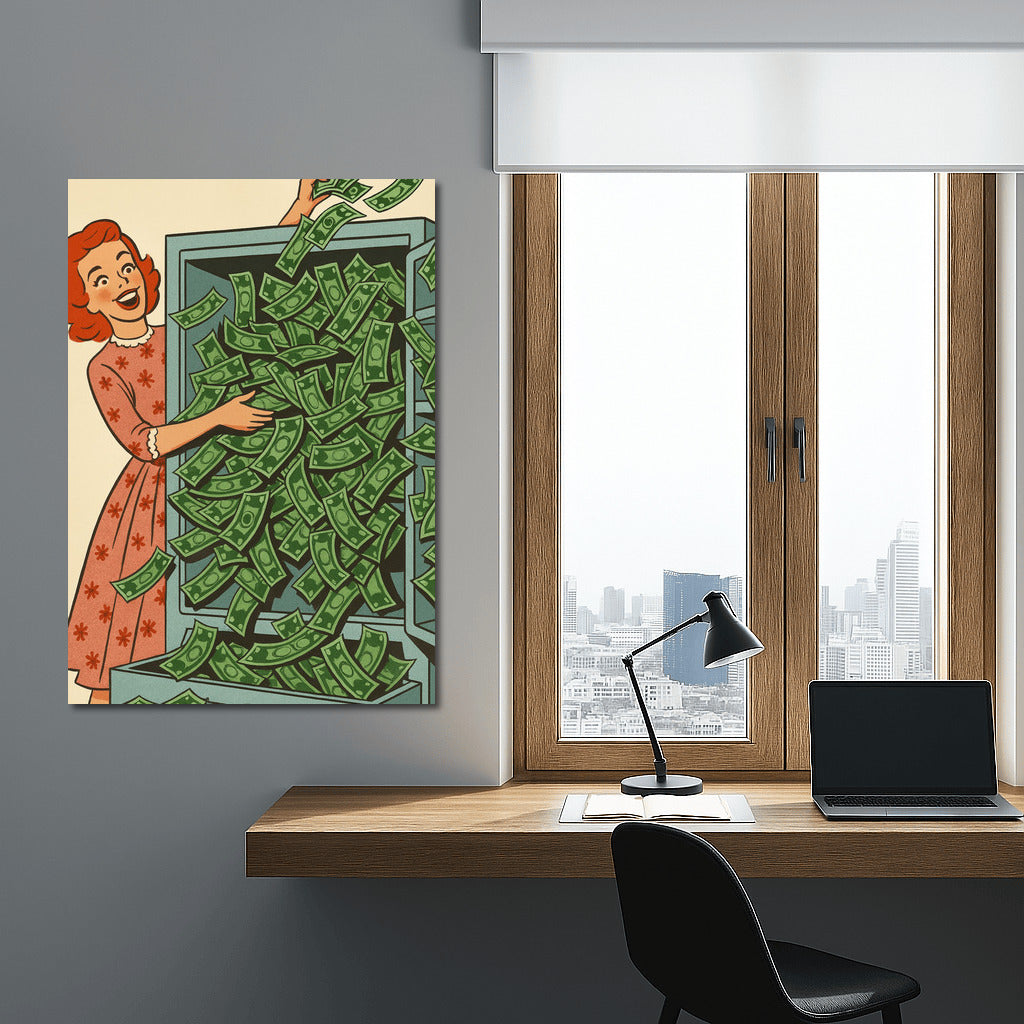 Open the door to your dreams with a poster of endless wealth flowing in an endless stream. Wall art of success! See more from the collection: Money Art