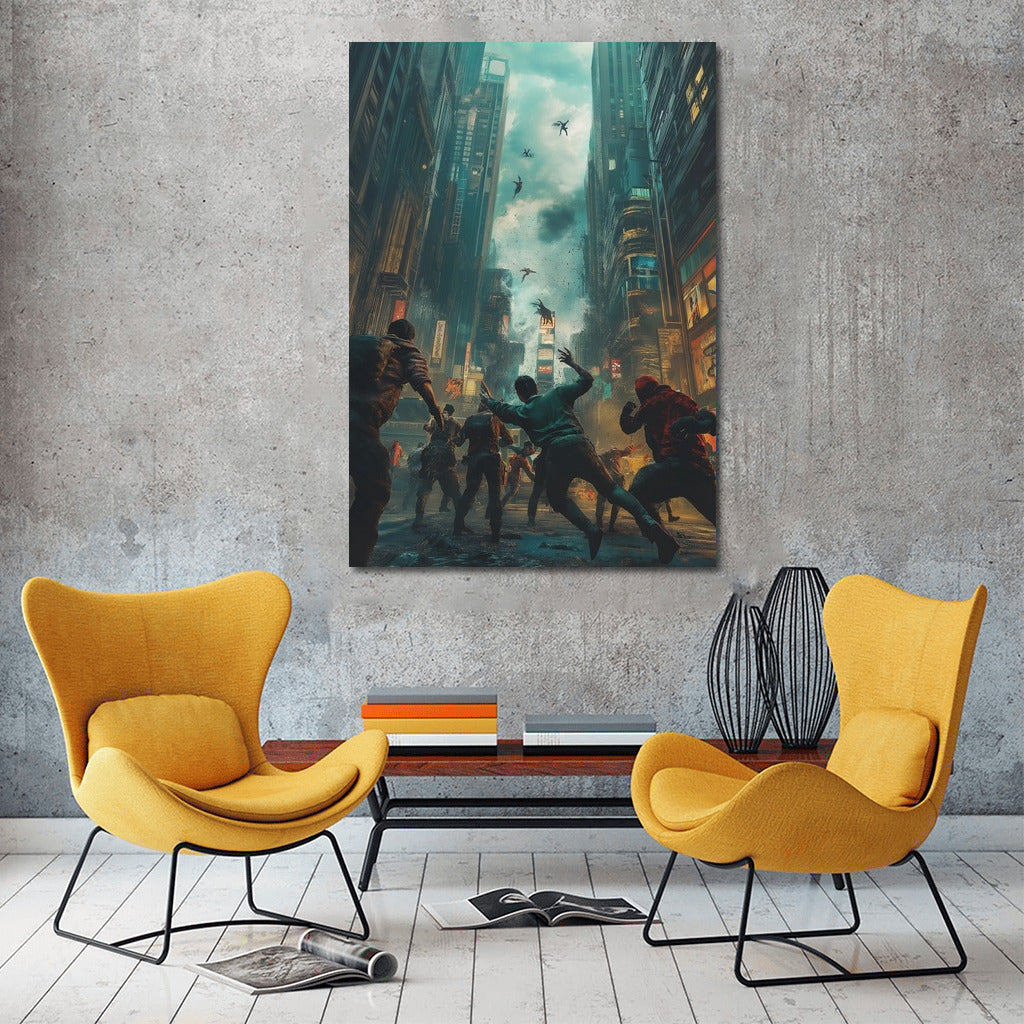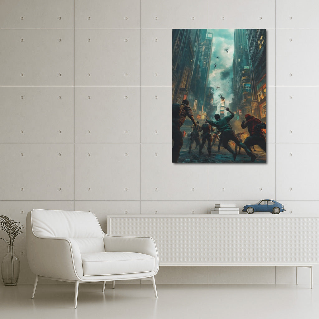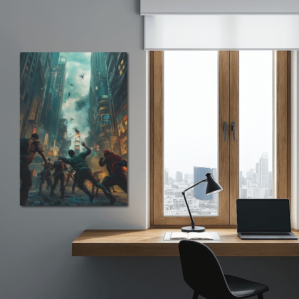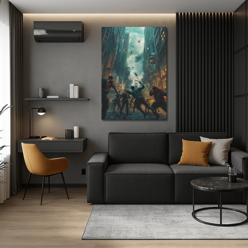 Cityscape descends into chaos: dramatic wall art to create an atmosphere of tension and dynamics in your interior. See more from the collection: Mixed Wall Art