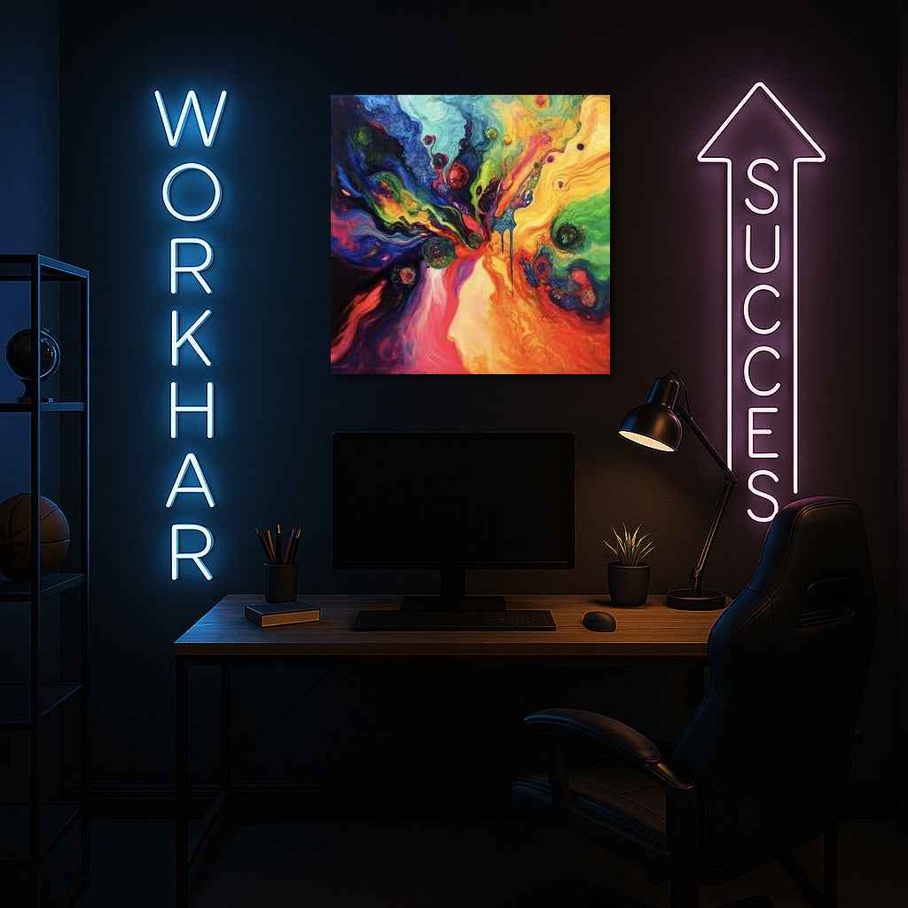 And now let's step into the heart of our operation — our workshop, where the real magic happens. Here, large printers and vibrant colors work together to create paintings that make hearts beat faster.