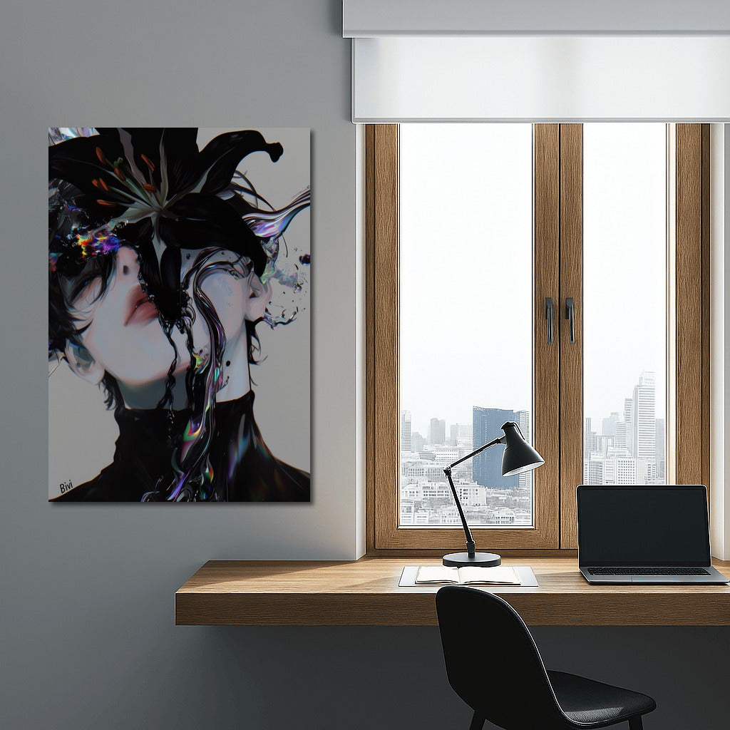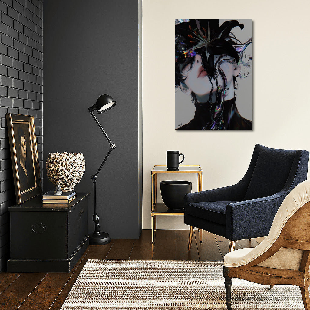 Expressive poster: abstract portrait in captivating colors. Wall art for vivid emotions. See more from the collection: Mixed Wall Art