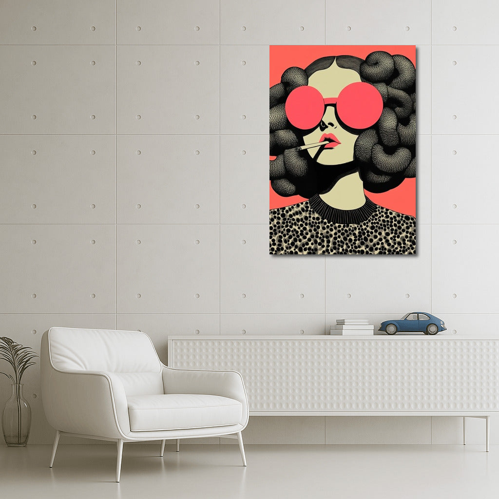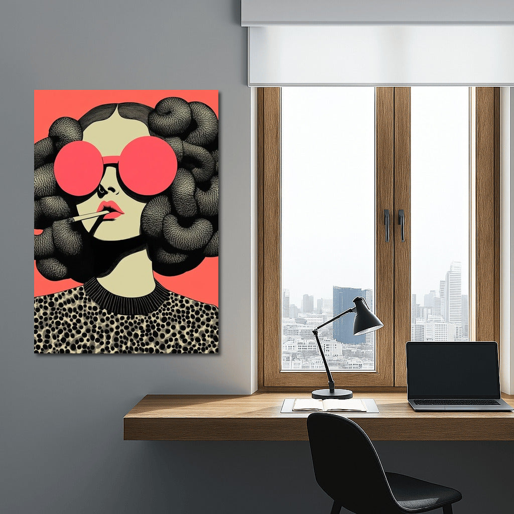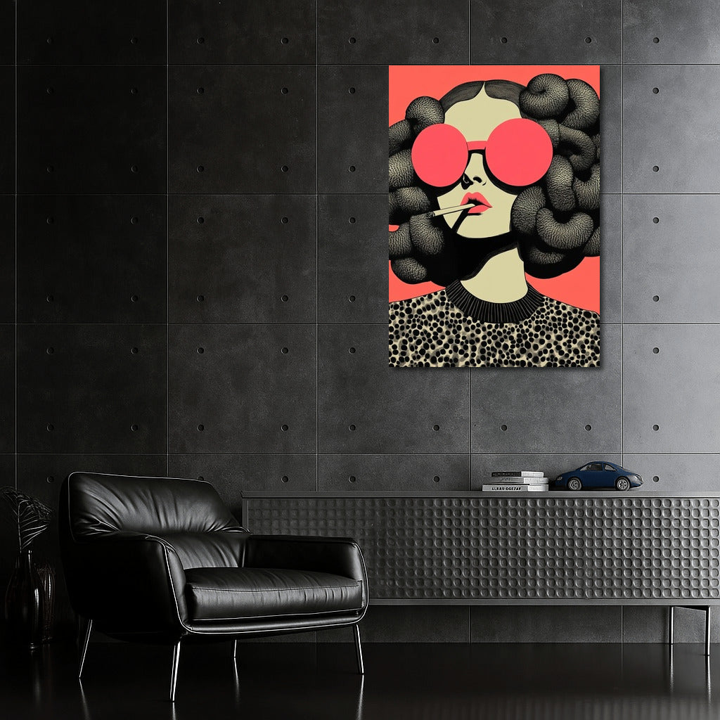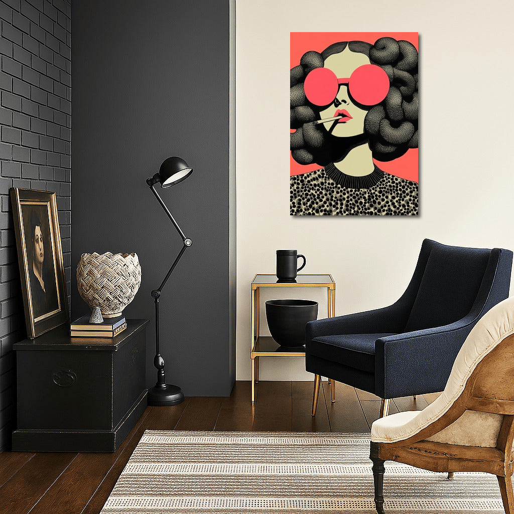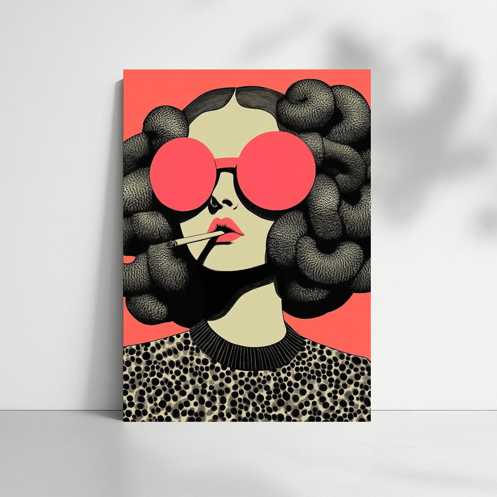 A bright poster with a charismatic figure in circle glasses and swirls. Add stylish wall art to your interior! See more from the collection: Pop Art