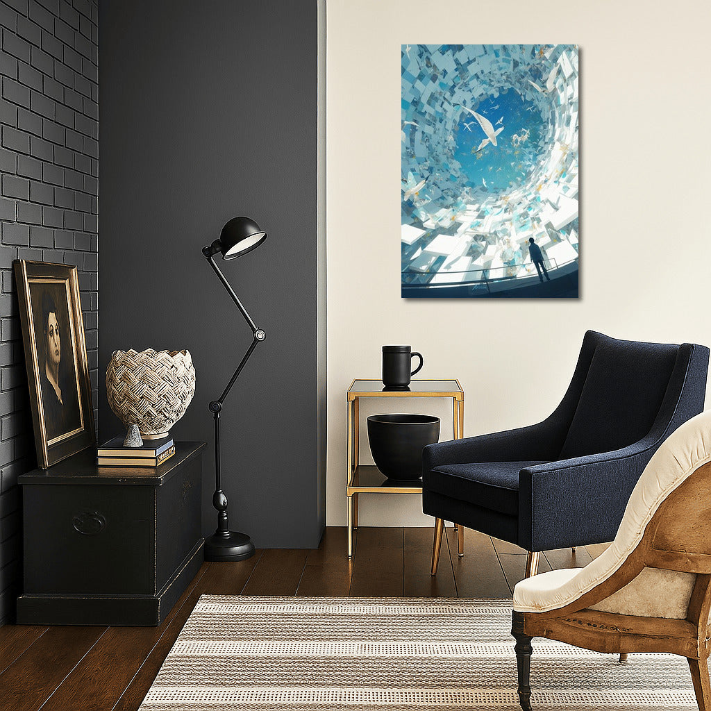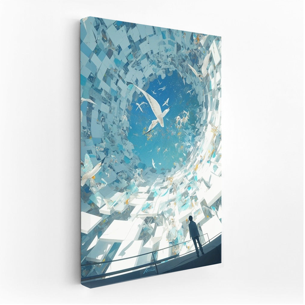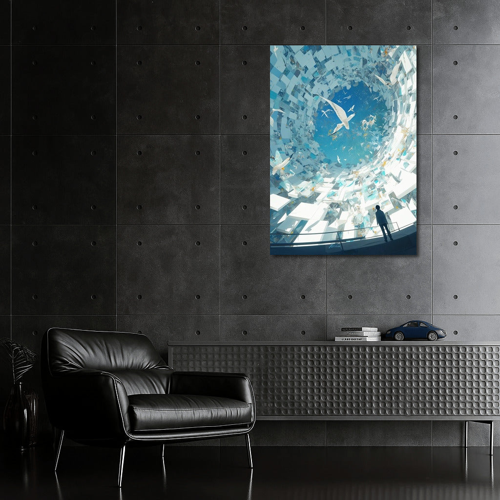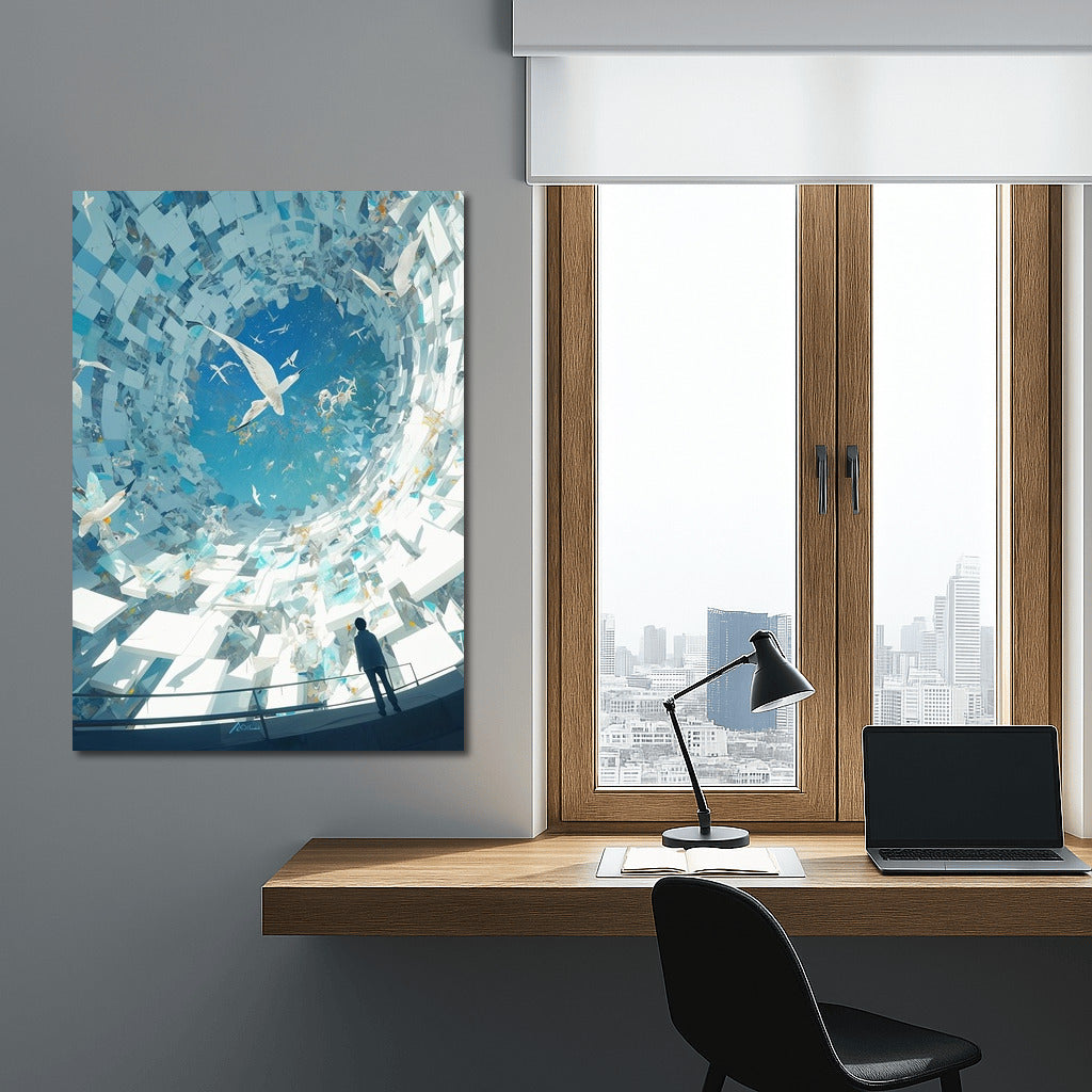 Dive into a dream world with this painting: sky funnel and soaring birds. Give magic to your wall art! See more from the collection: Mixed Wall Art
