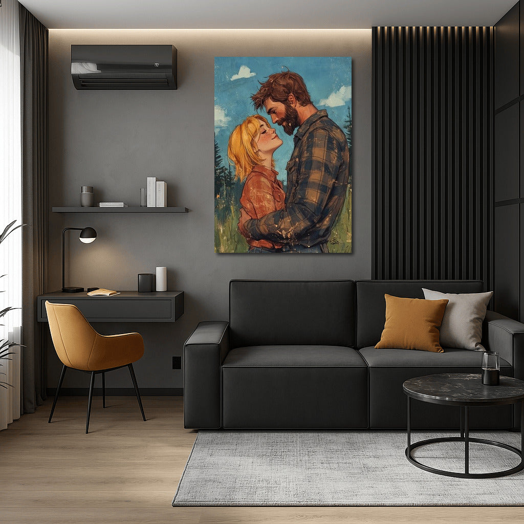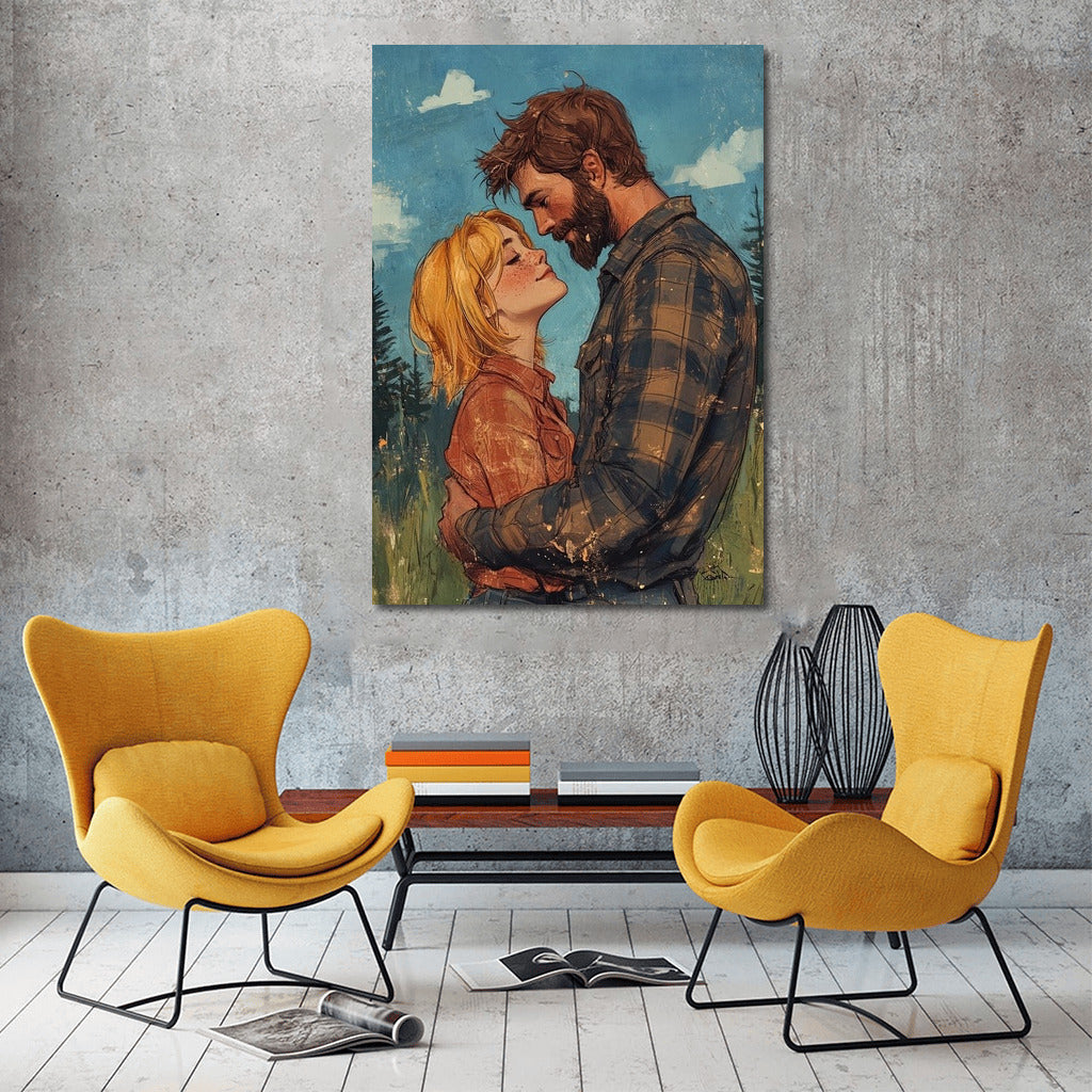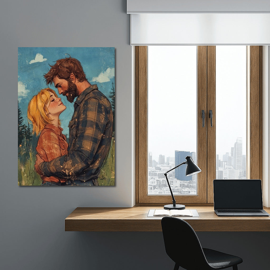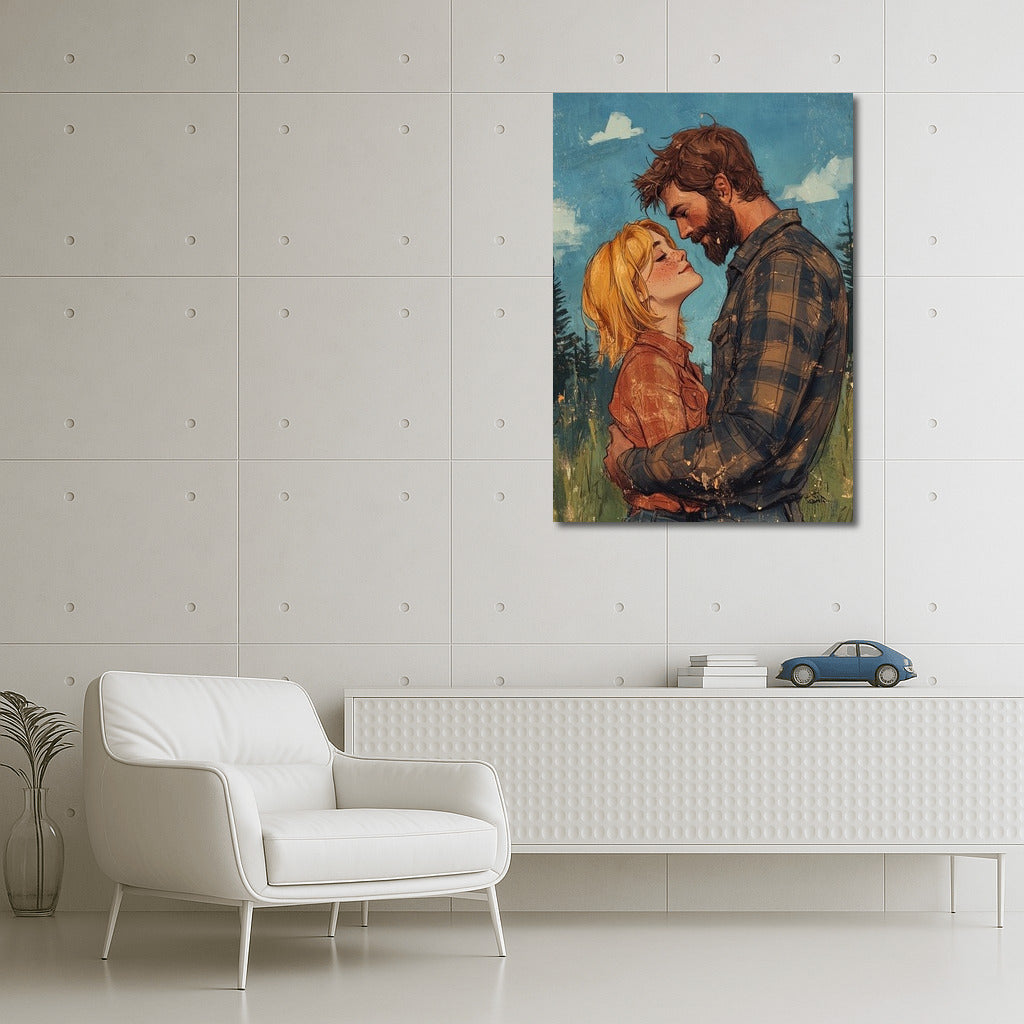 Tenderness poster: retro style art painting with a touching scene in the background of nature. Wall art with soul. See more from the collection: Love Art