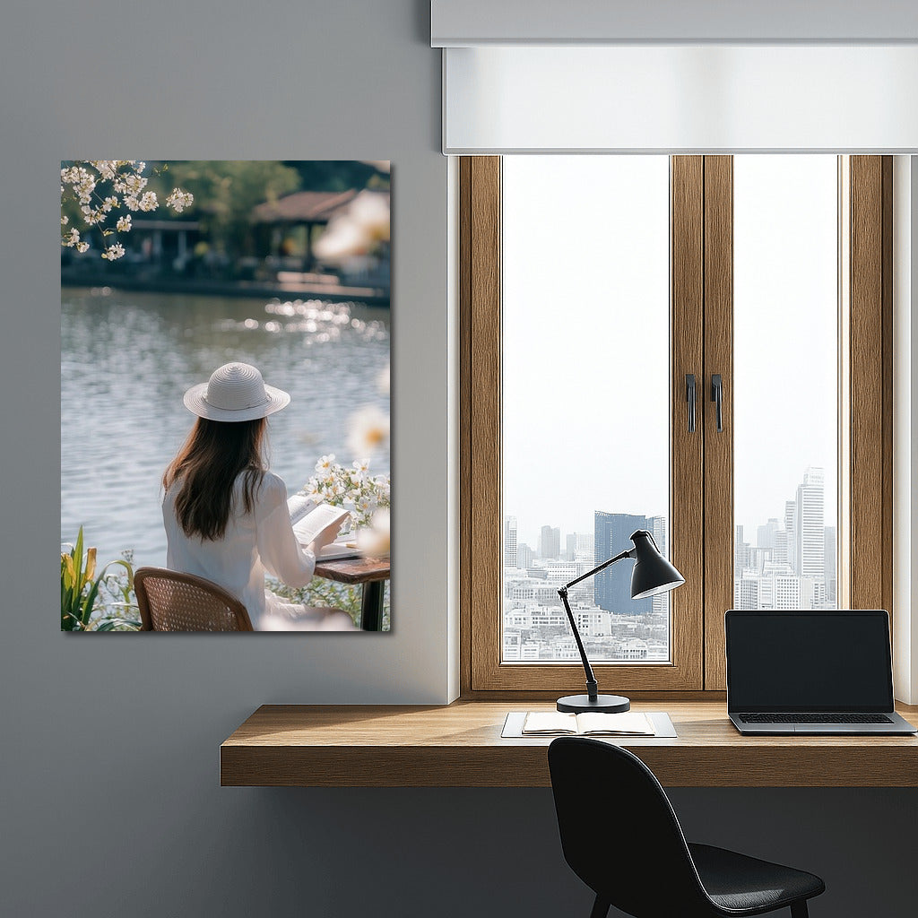 Spring and inspiration: a poster with a calming view of a lake. Perfect wall art for a dreamy atmosphere. See more from the collection: Mixed Wall Art