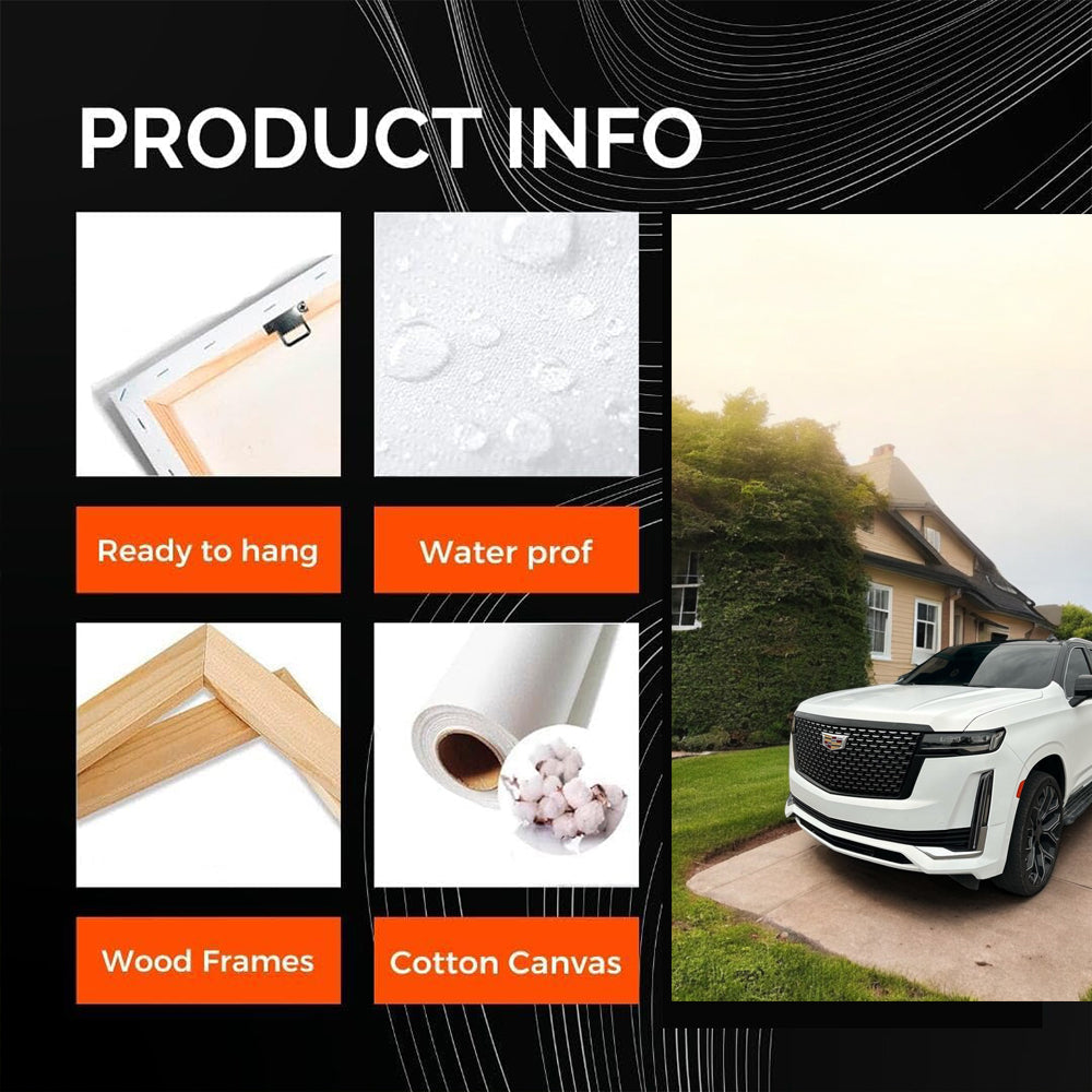 In this painting, brother, the white Cadillac stands like the king of the village. The wall art roars with its engine, as if it is about to break off the canvas. This is a poster for those who know that life is a road, and Cadillac is its true master. See more from the collection: Cadillac Art