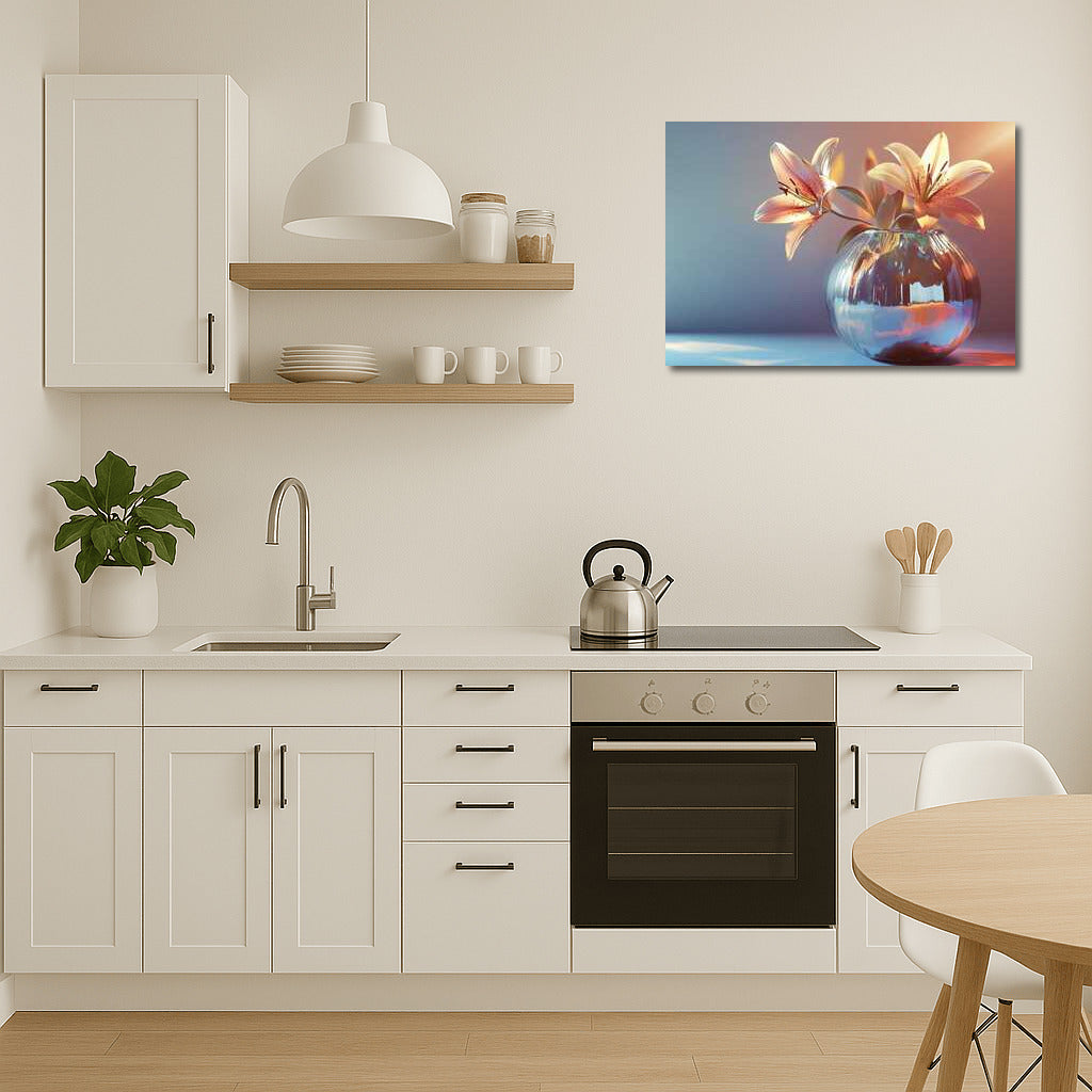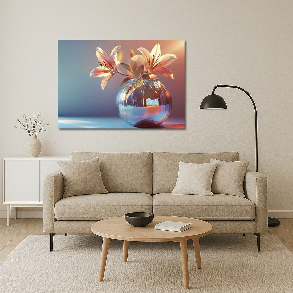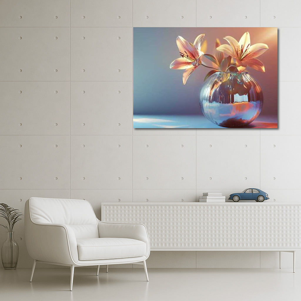 Elegant Painting: Lilies in a Glass Vase. Liven up your space with delicate wall art that exudes sophisticated simplicity. See more from the collection: Flowers Art