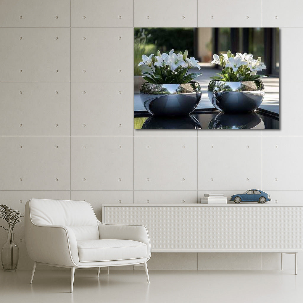 White Casablanca Lilies in Radiant Vases: Elegance and Tranquility Wall Art