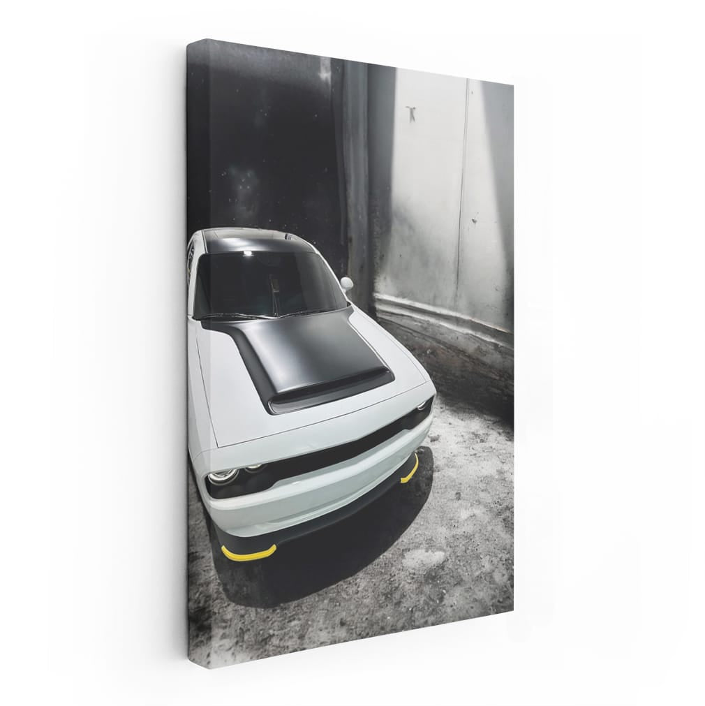 On the wall of this abandoned building hangs not just a poster, but a real masterpiece for car fans. Dodge White seems to come alive in this wall art, where every stroke conveys power and speed. This is a painting that makes the heart beat faster, because this is not just a car, it is a legend. See more from the collection: Dodge Art