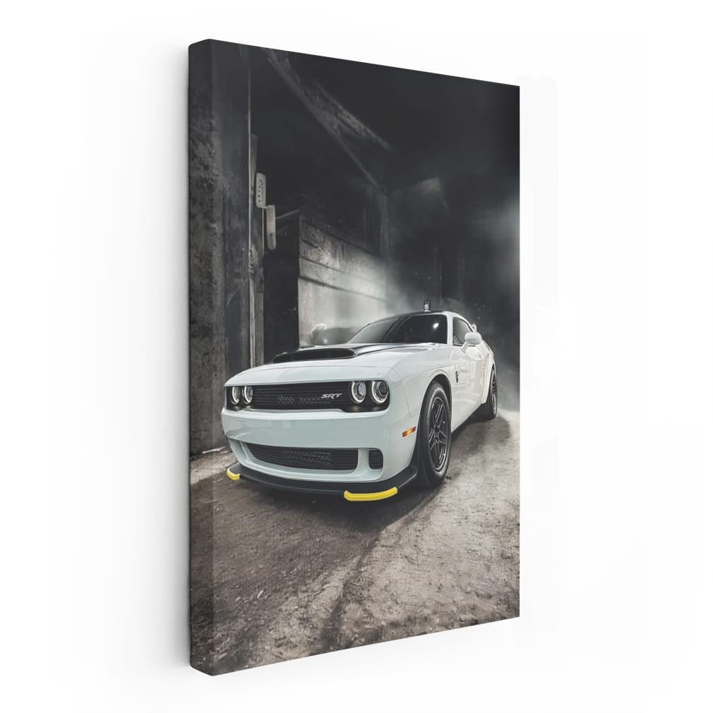 Dude, just look at this poster! Dodge White in an abandoned place - this is just the bomb! Wall art for real car lovers. The painting just whispers: "I am a legend!" In the spirit of a street racer who is always in style. See more from the collection: Dodge Art