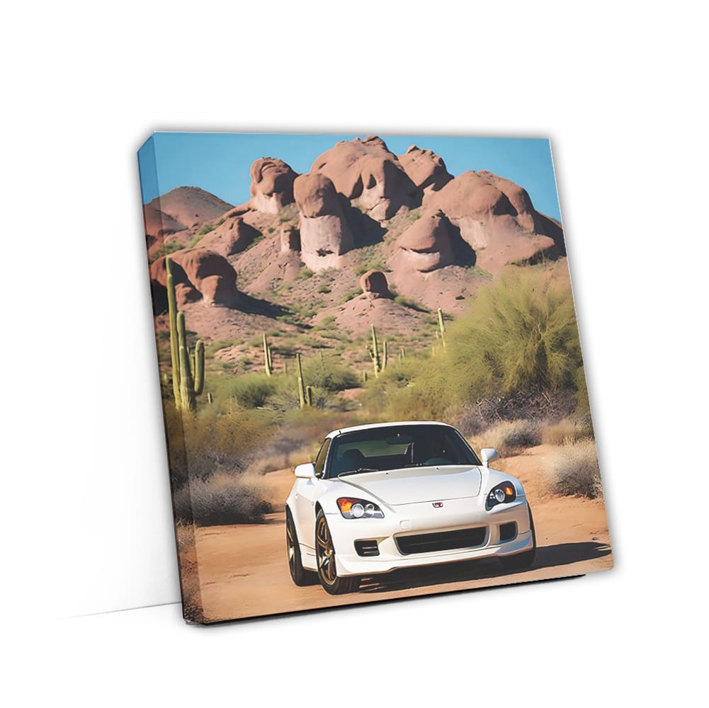 This painting is pure adrenaline on the wall. A white Honda S2000, like a rocket, rushes through the streets of Phoenix. This poster is a real must-have for lovers of speed and bright style. Wall art that says: "I'm here to live life to the fullest!" See more from the collection: Honda Art