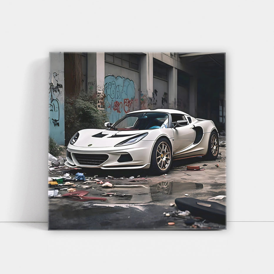 White Lotus Elise in Urban Setting - Sleek and Sporty Ride Wall Art
