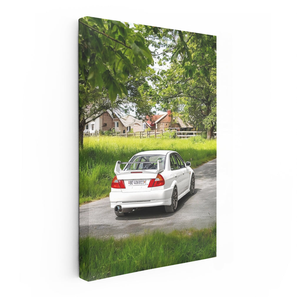 White Mitsubishi Lancer in Nature - Adventure-Ready Spirit Wall Art