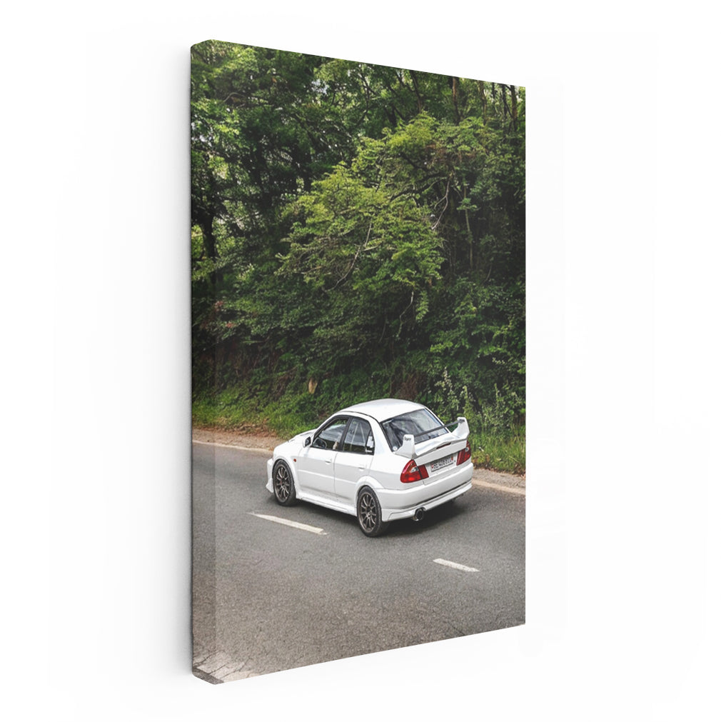 Bro, the painting with the white Mitsubishi Lancer on the road is just the bomb! Wall art for true car fans: power and speed in every stroke. This poster is like adrenaline on the wall, it charges you to the fullest! See more from the collection: Mitsubishi Art
