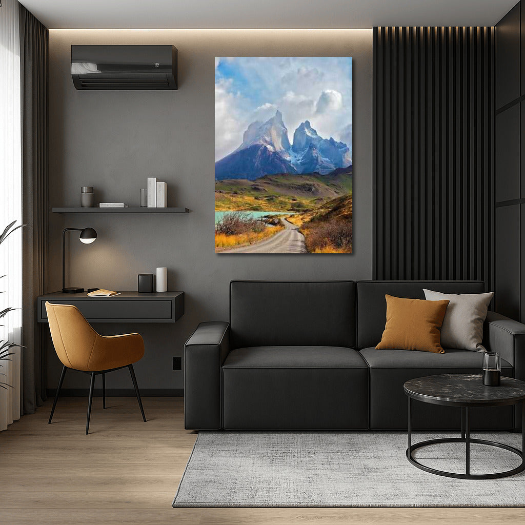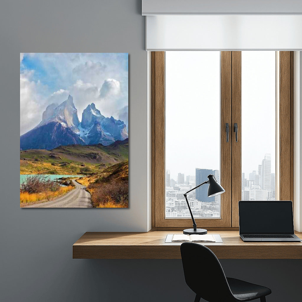 Inspirational poster: the wild beauty of Chile's nature. The landscape leads deep into the unknown, where the sky meets the mountains. See more from the collection: Country Art