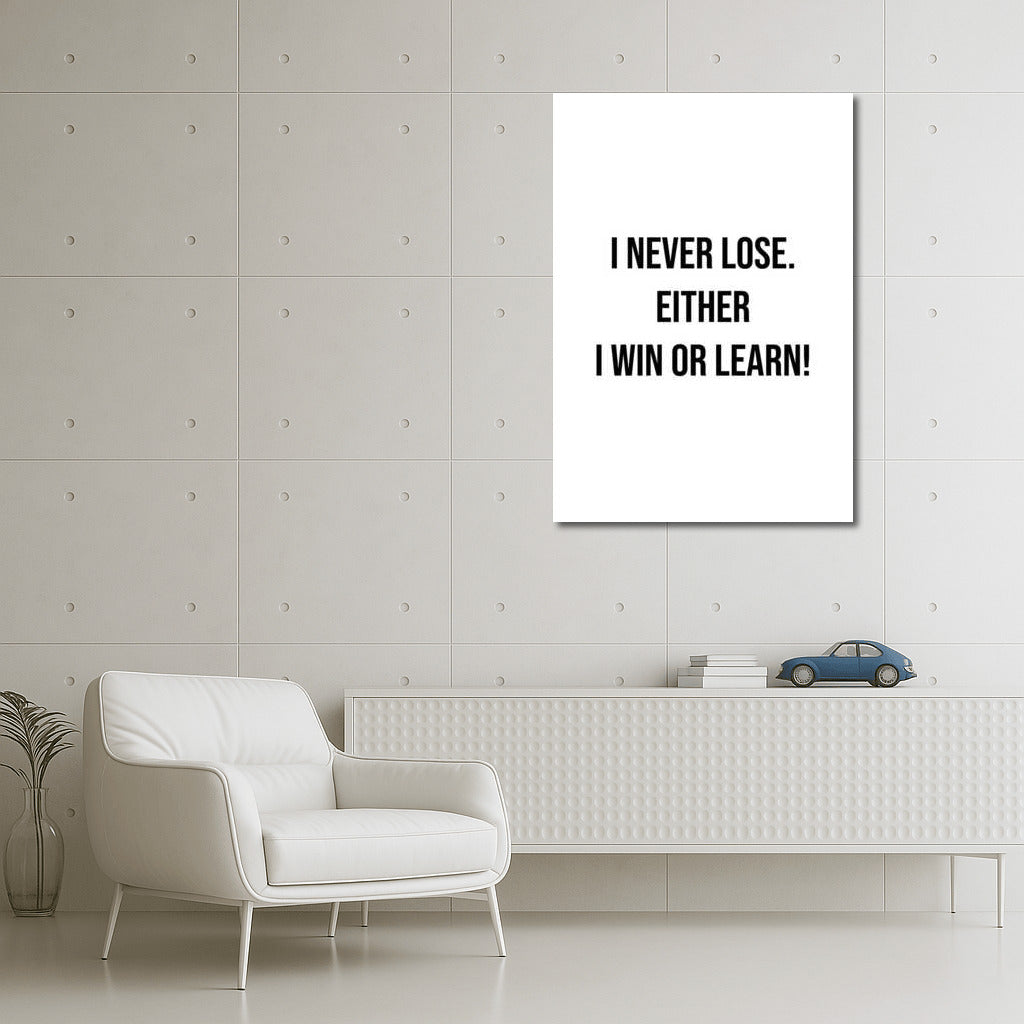 Poster I never lose. Either I win or learn! - inspiration and motivation in wall art. Learn and win every day! See more from the collection: Inspirational & Motivational Quotes Art