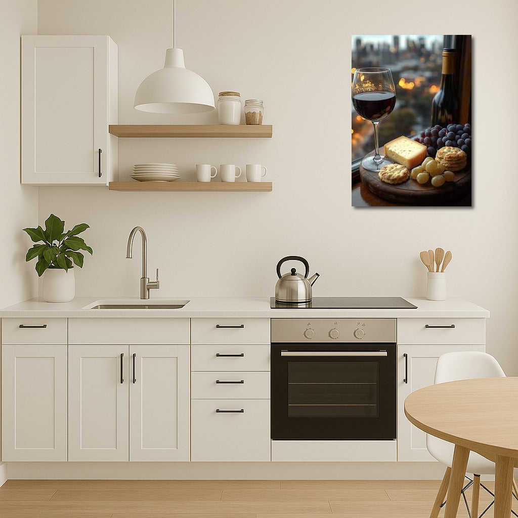 This painting will turn your evening into a cozy holiday! Wine, cheese and grapes on a poster for true gourmets of wall art. See more from the collection: Food Art
