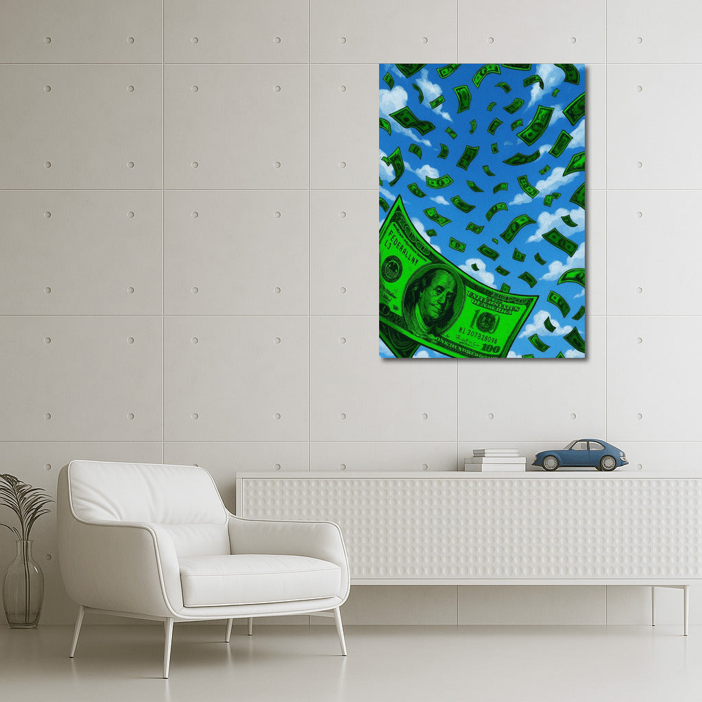 Wings of Wealth: Banknotes Flying in the Sky Wall Art